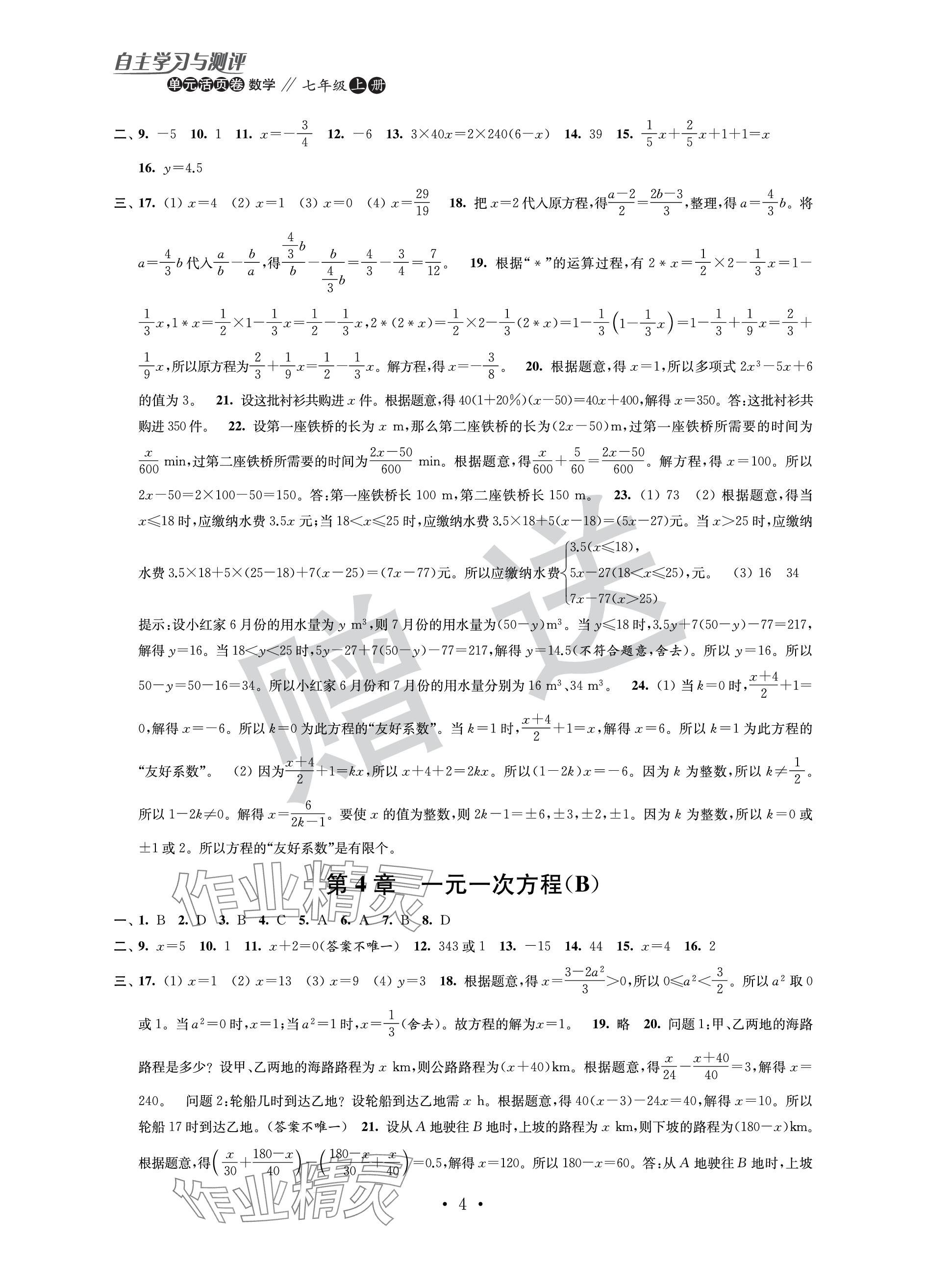 注:目前有些书本章节名称可能整理的还不是很完善,但都是按照顺序排列的,请同学们按照顺序仔细查找。练习册 2023年自主学习与测评单元活页卷七年级数学上册苏科版 答案主要是用来给同学们做完题方便对答案用的,请勿直接抄袭。