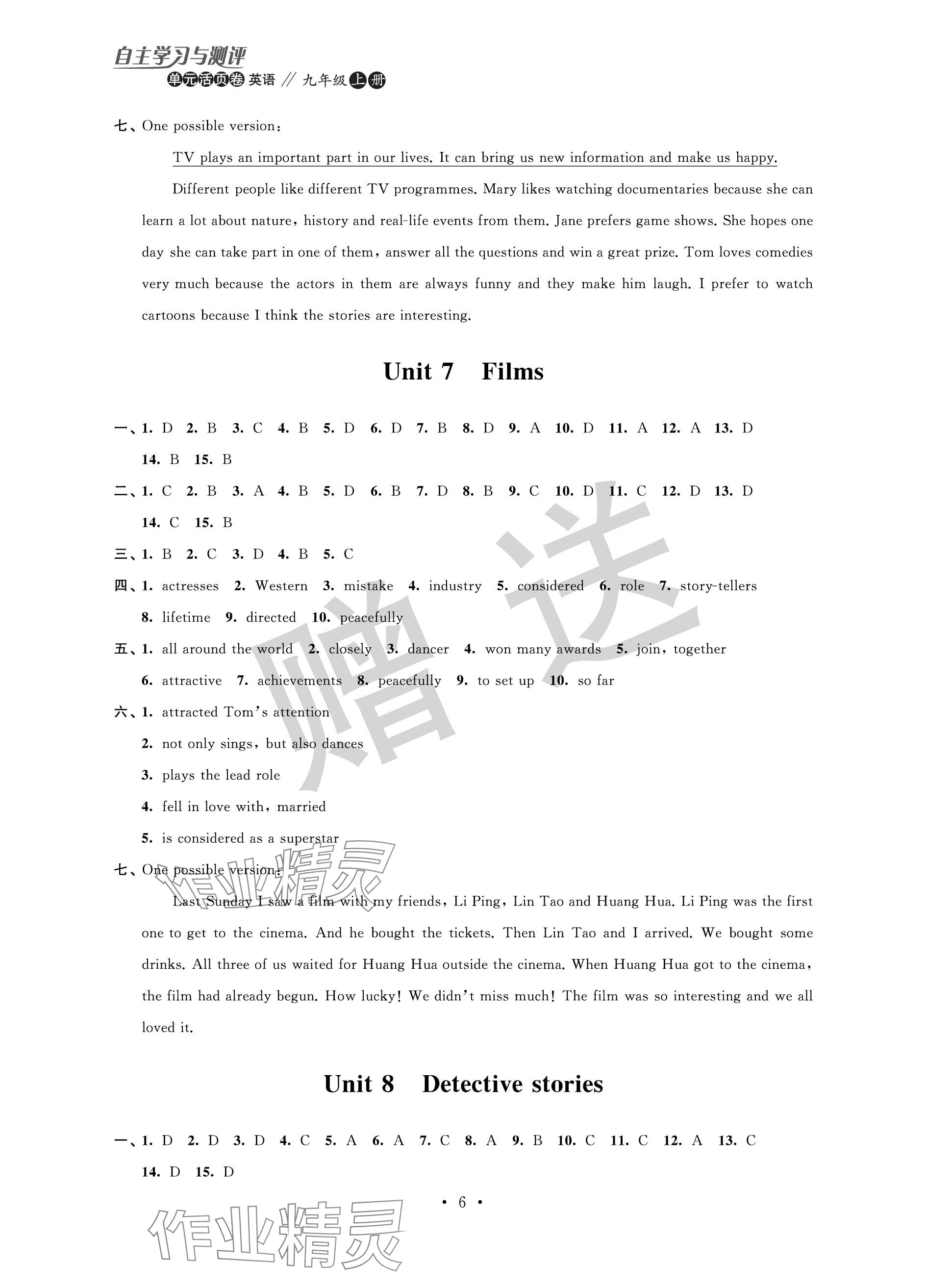 注:目前有些书本章节名称可能整理的还不是很完善,但都是按照顺序排列的,请同学们按照顺序仔细查找。练习册 2023年自主学习与测评单元活页卷九年级英语上册译林版 答案主要是用来给同学们做完题方便对答案用的,请勿直接抄袭。
