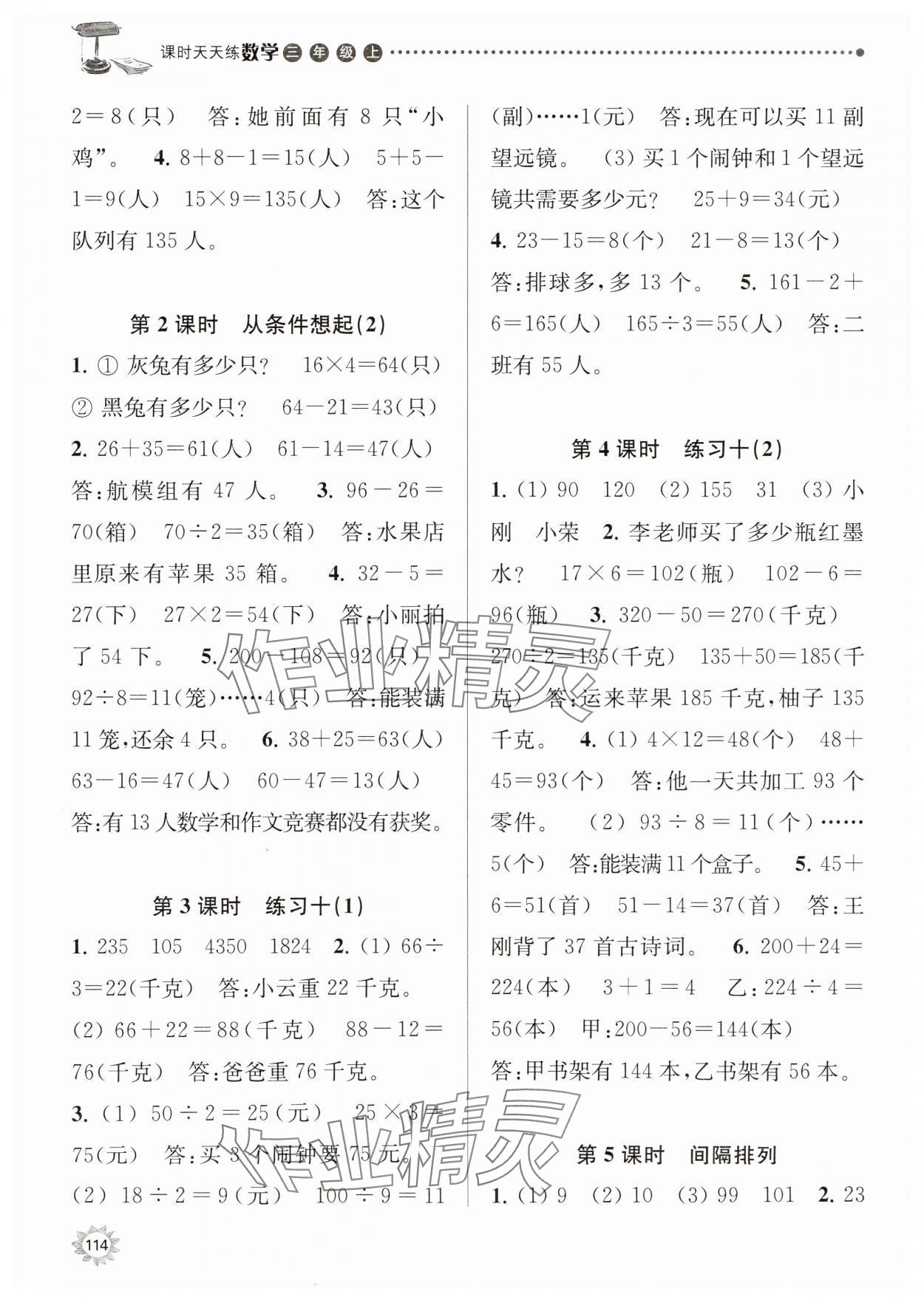 注:目前有些书本章节名称可能整理的还不是很完善,但都是按照顺序排列的,请同学们按照顺序仔细查找。练习册 2023年课时天天练三年级数学上册苏教版 答案主要是用来给同学们做完题方便对答案用的,请勿直接抄袭。