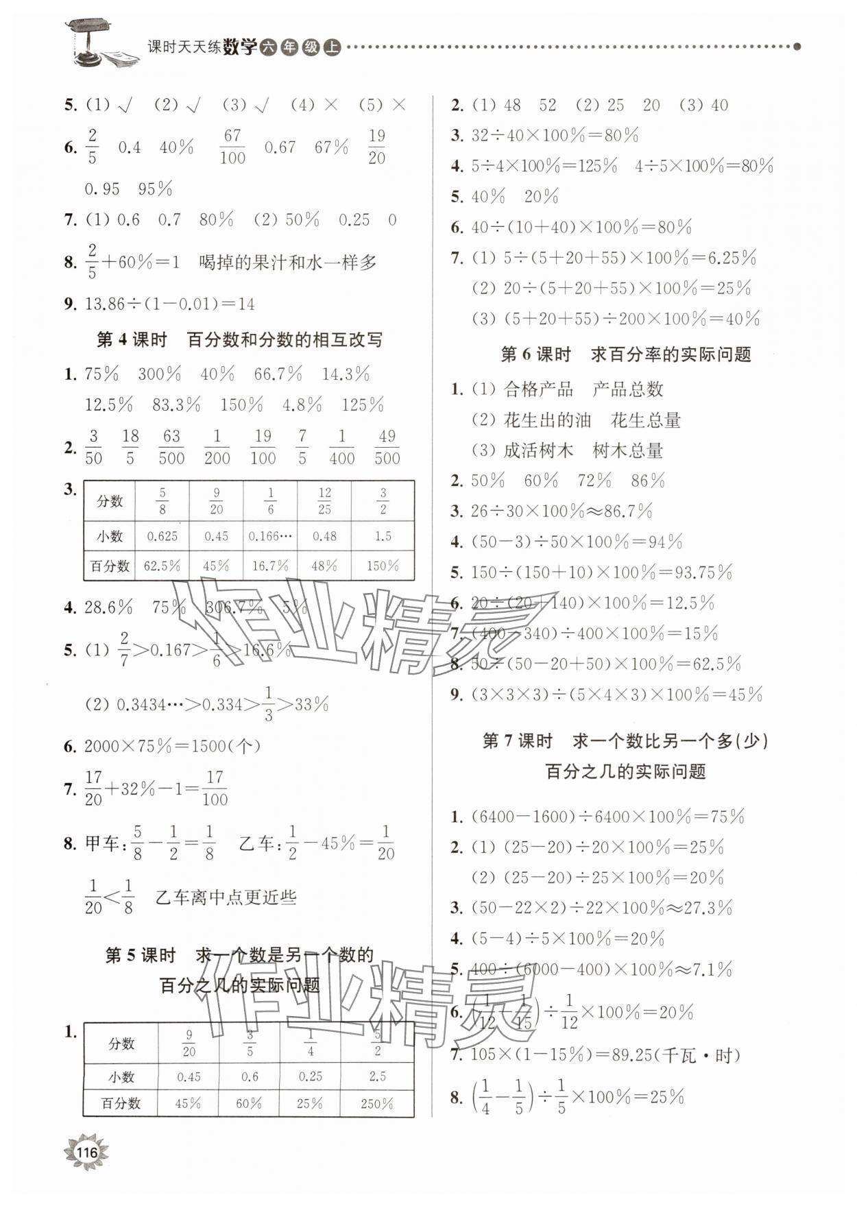 注:目前有些书本章节名称可能整理的还不是很完善,但都是按照顺序排列的,请同学们按照顺序仔细查找。练习册 2023年课时天天练六年级数学上册苏教版 答案主要是用来给同学们做完题方便对答案用的,请勿直接抄袭。