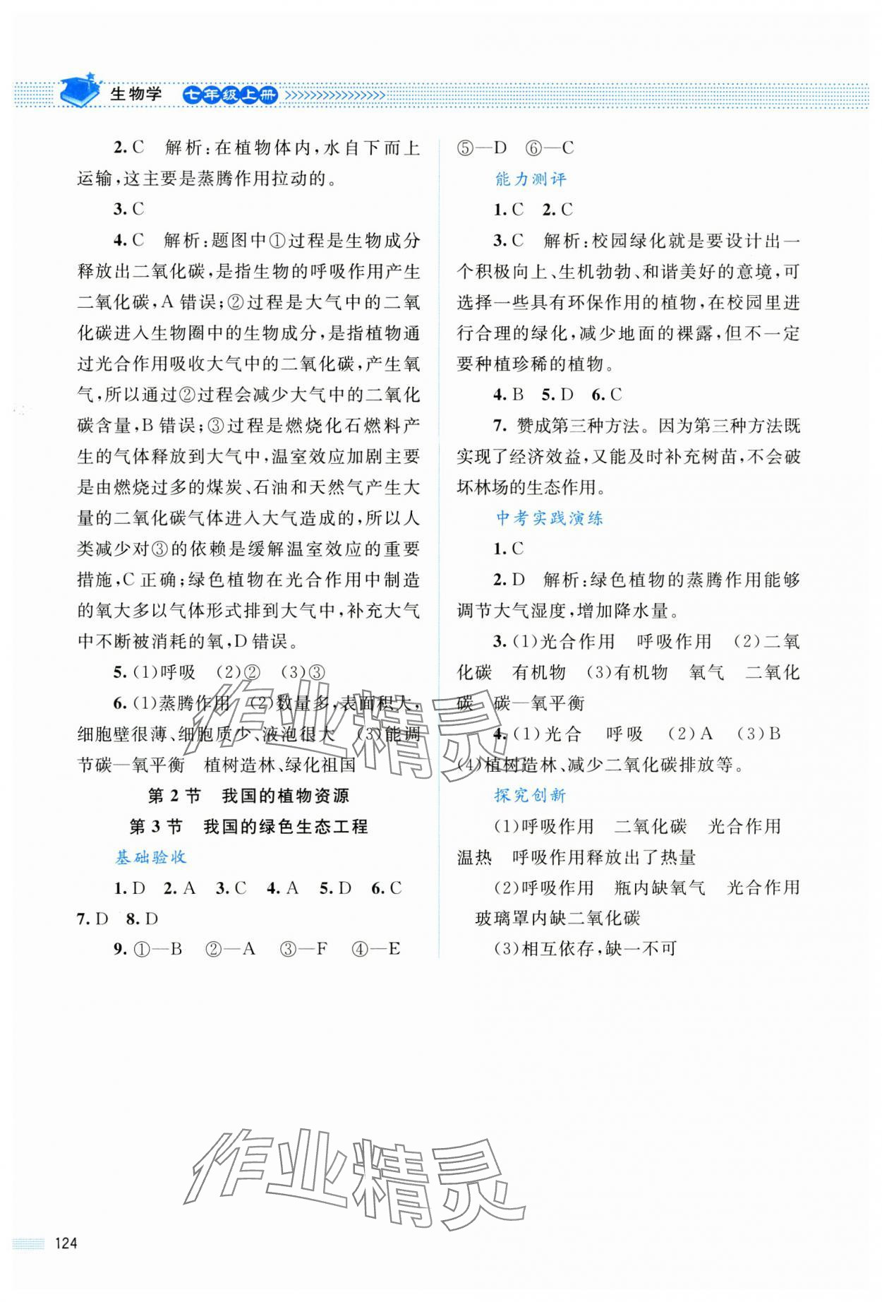 注:目前有些书本章节名称可能整理的还不是很完善,但都是按照顺序排列的,请同学们按照顺序仔细查找。练习册 2023年课堂精练七年级生物上册人教版双色 答案主要是用来给同学们做完题方便对答案用的,请勿直接抄袭。