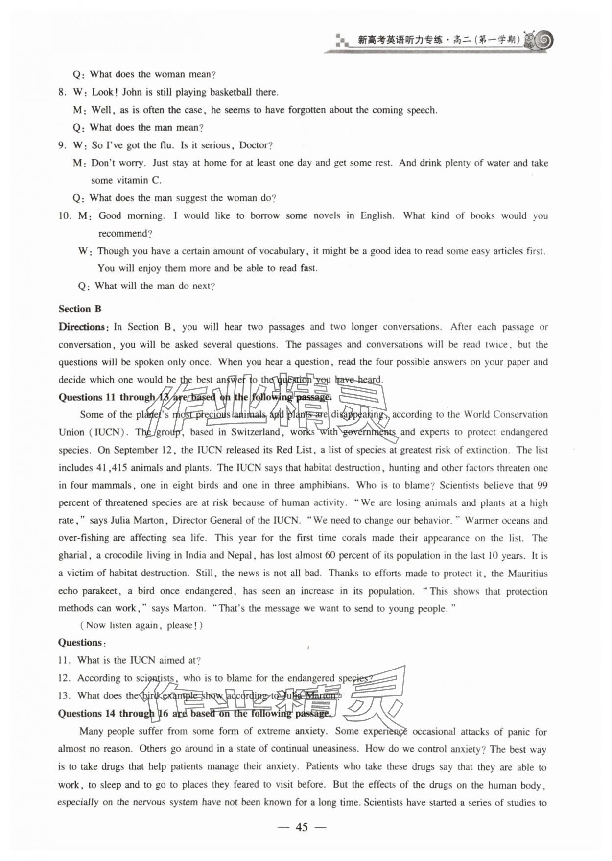 注:目前有些书本章节名称可能整理的还不是很完善,但都是按照顺序排列的,请同学们按照顺序仔细查找。练习册 2023年新高考英语听力专练高三人教版54制 答案主要是用来给同学们做完题方便对答案用的,请勿直接抄袭。