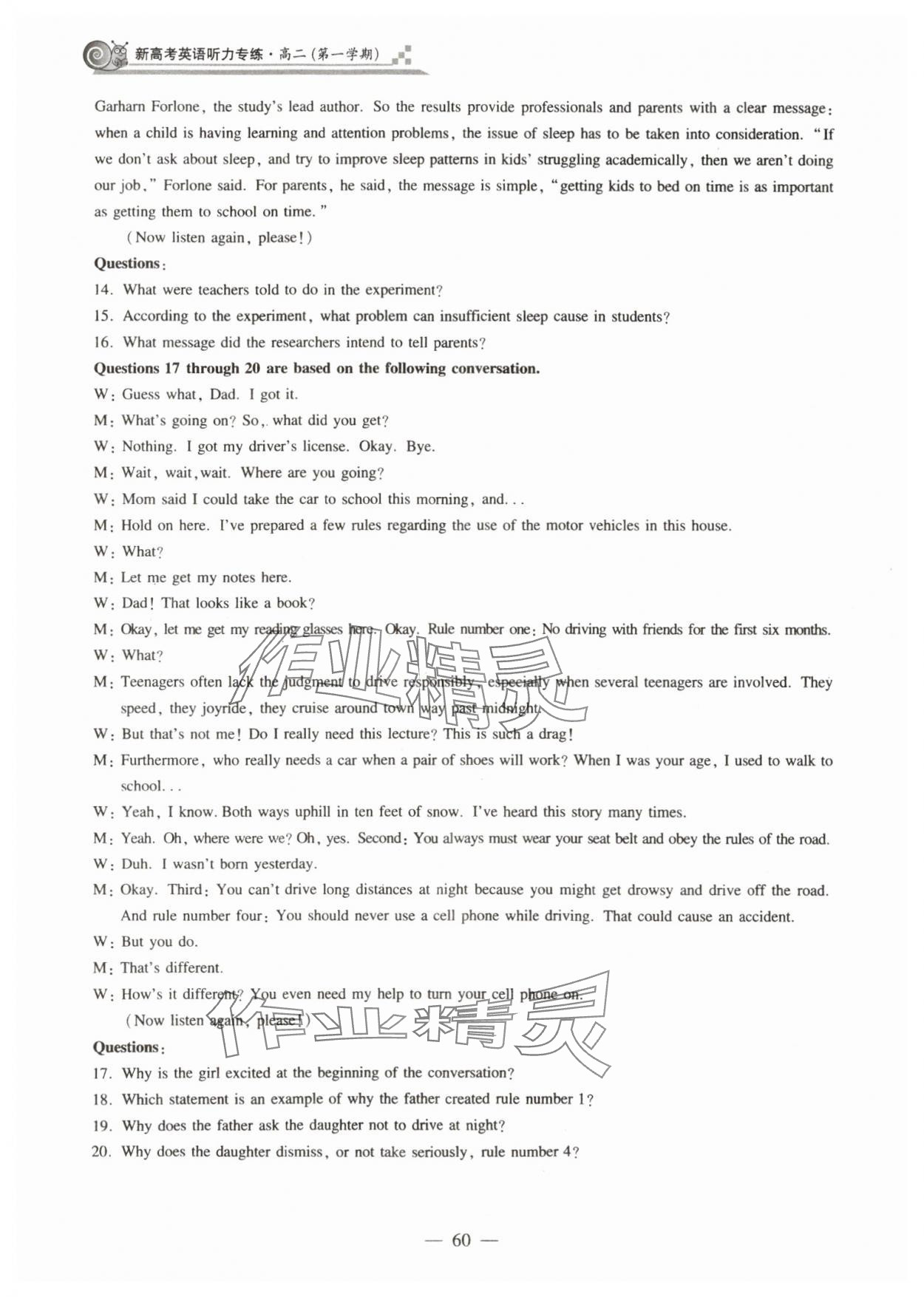 2023年新高考英语听力专练高三人教版54制