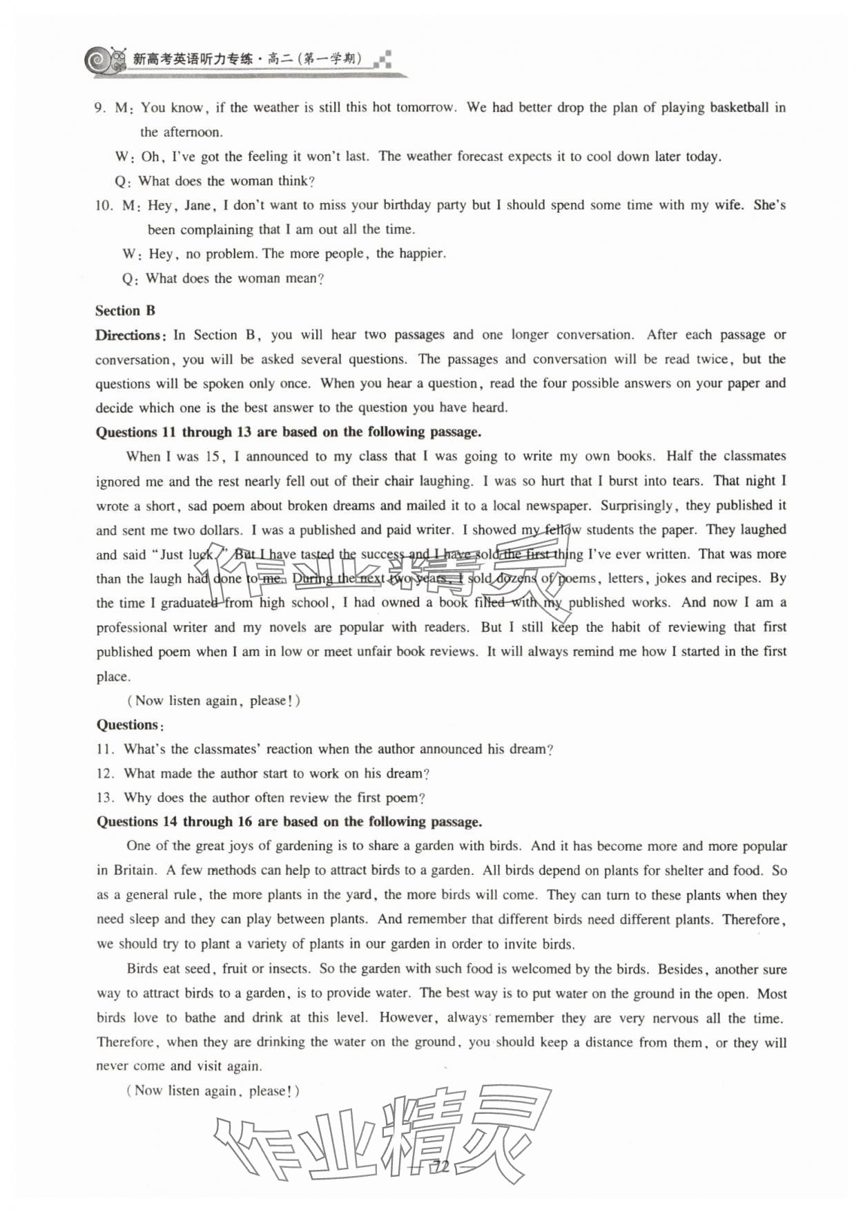 注:目前有些书本章节名称可能整理的还不是很完善,但都是按照顺序排列的,请同学们按照顺序仔细查找。练习册 2023年新高考英语听力专练高三人教版54制 答案主要是用来给同学们做完题方便对答案用的,请勿直接抄袭。