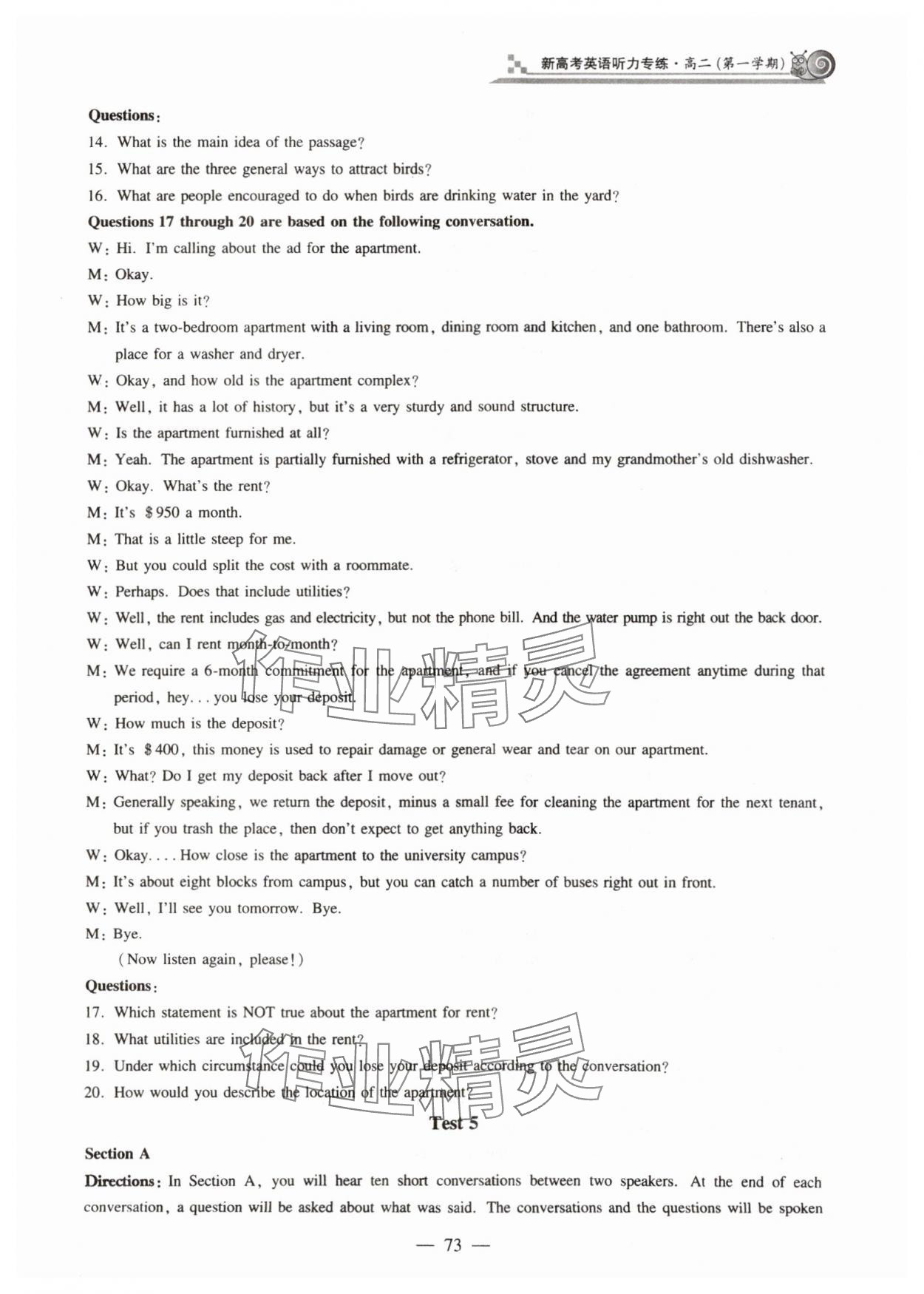 注:目前有些书本章节名称可能整理的还不是很完善,但都是按照顺序排列的,请同学们按照顺序仔细查找。练习册 2023年新高考英语听力专练高三人教版54制 答案主要是用来给同学们做完题方便对答案用的,请勿直接抄袭。