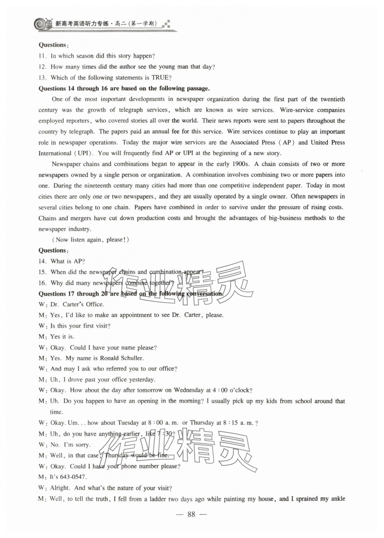 注:目前有些书本章节名称可能整理的还不是很完善,但都是按照顺序排列的,请同学们按照顺序仔细查找。练习册 2023年新高考英语听力专练高三人教版54制 答案主要是用来给同学们做完题方便对答案用的,请勿直接抄袭。