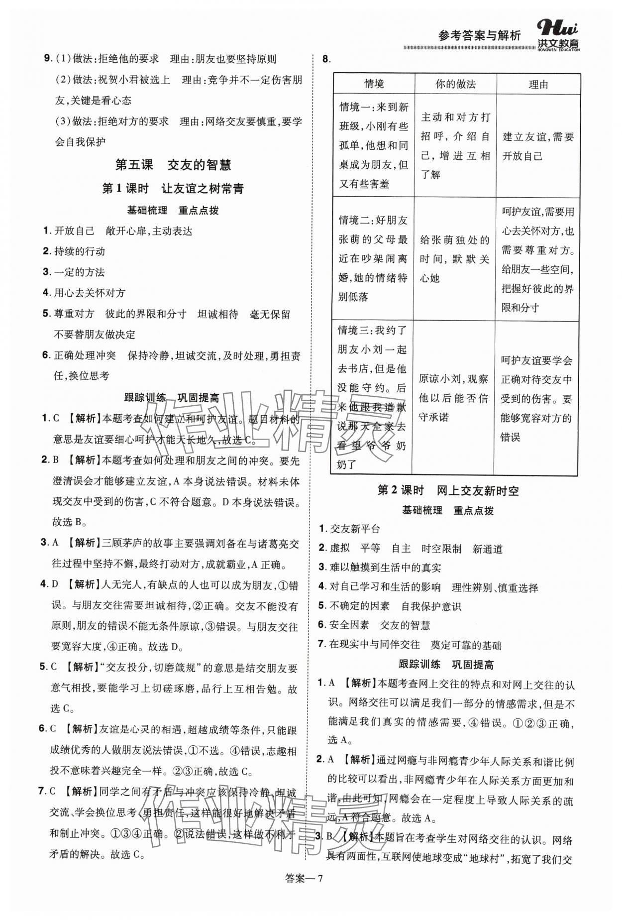 2023年洪文教育优学案七年级道德与法治上册人教版