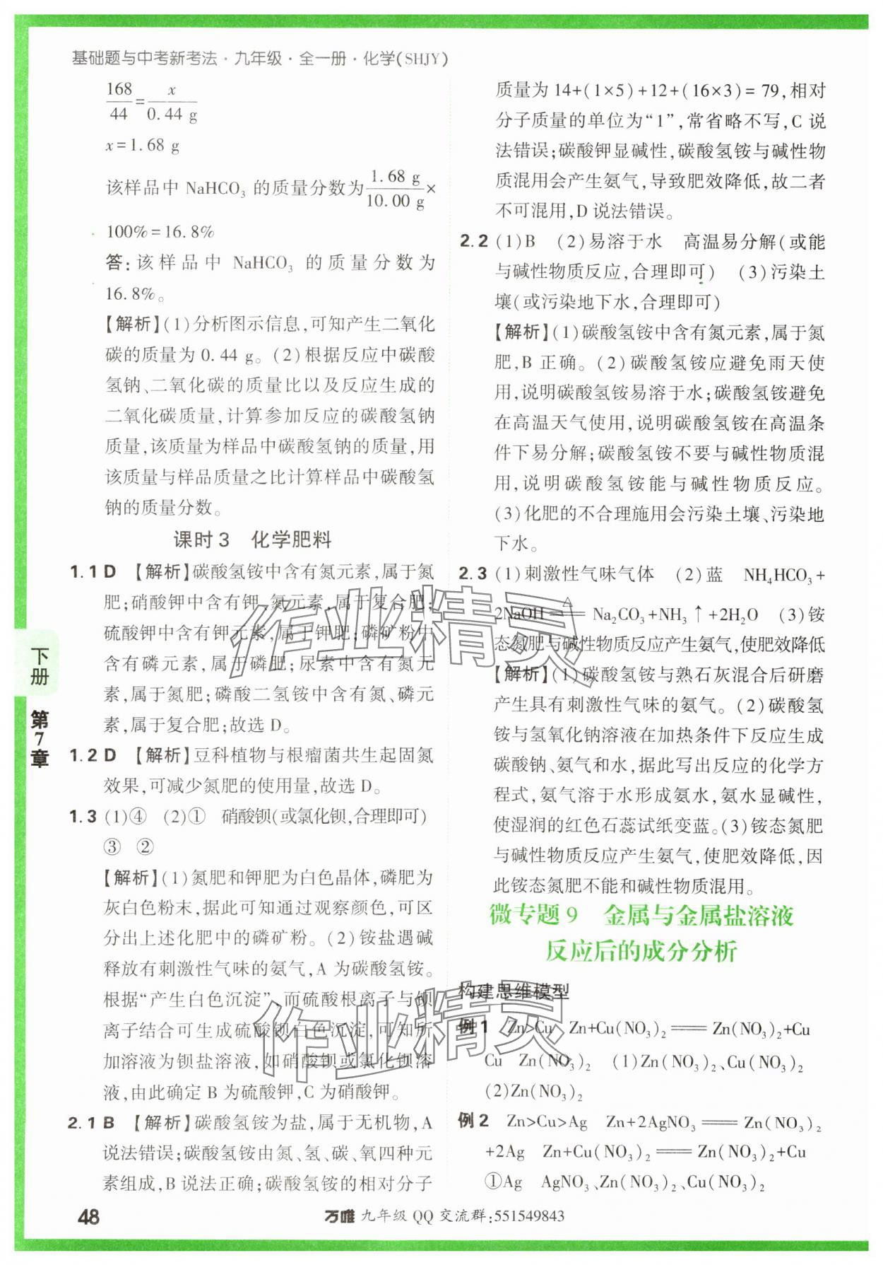 2023年基础题与中考新考法九年级化学全一册沪教版