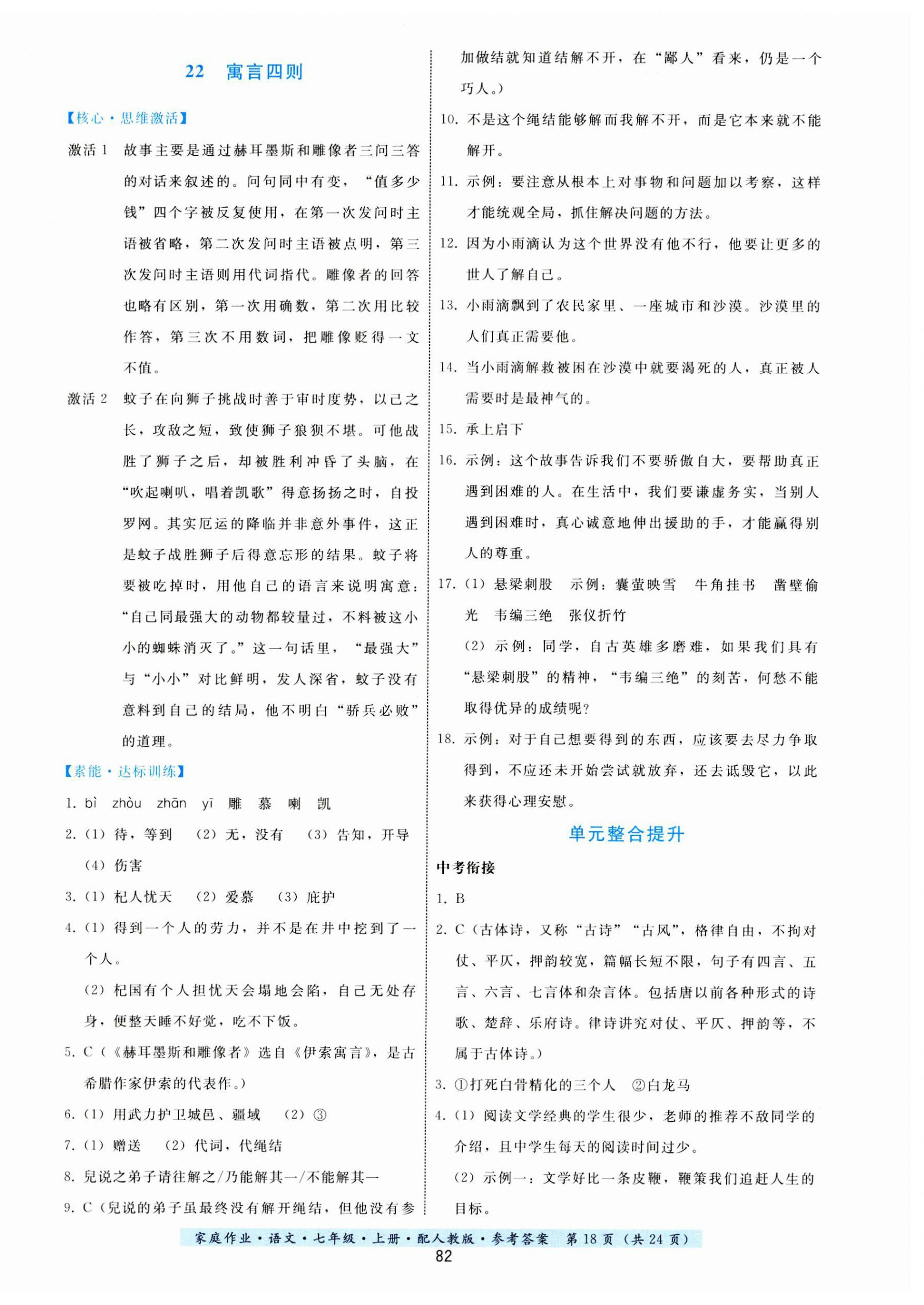 注:目前有些书本章节名称可能整理的还不是很完善,但都是按照顺序排列的,请同学们按照顺序仔细查找。练习册 2023年家庭作业七年级语文上册人教版 答案主要是用来给同学们做完题方便对答案用的,请勿直接抄袭。