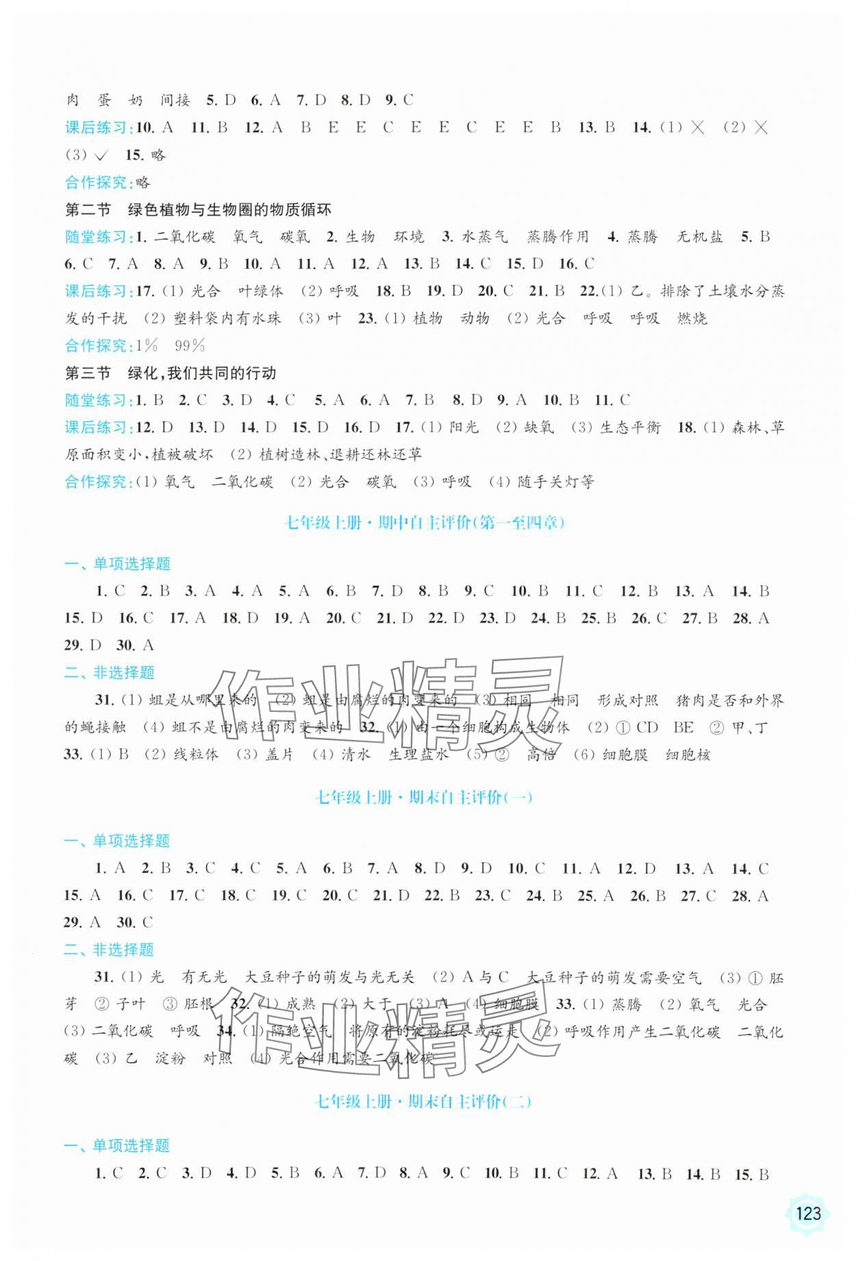 注:目前有些书本章节名称可能整理的还不是很完善,但都是按照顺序排列的,请同学们按照顺序仔细查找。练习册 2023年学习与评价江苏凤凰教育出版社七年级生物上册苏教版云南专版 答案主要是用来给同学们做完题方便对答案用的,请勿直接抄袭。