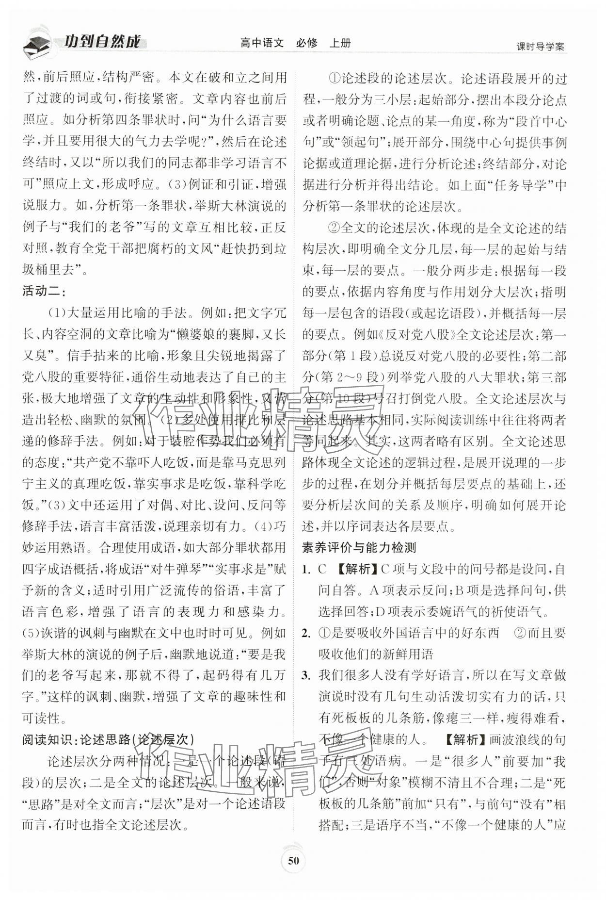 注:目前有些书本章节名称可能整理的还不是很完善,但都是按照顺序排列的,请同学们按照顺序仔细查找。练习册 2023年功到自然成课时导学案语文必修上册 答案主要是用来给同学们做完题方便对答案用的,请勿直接抄袭。