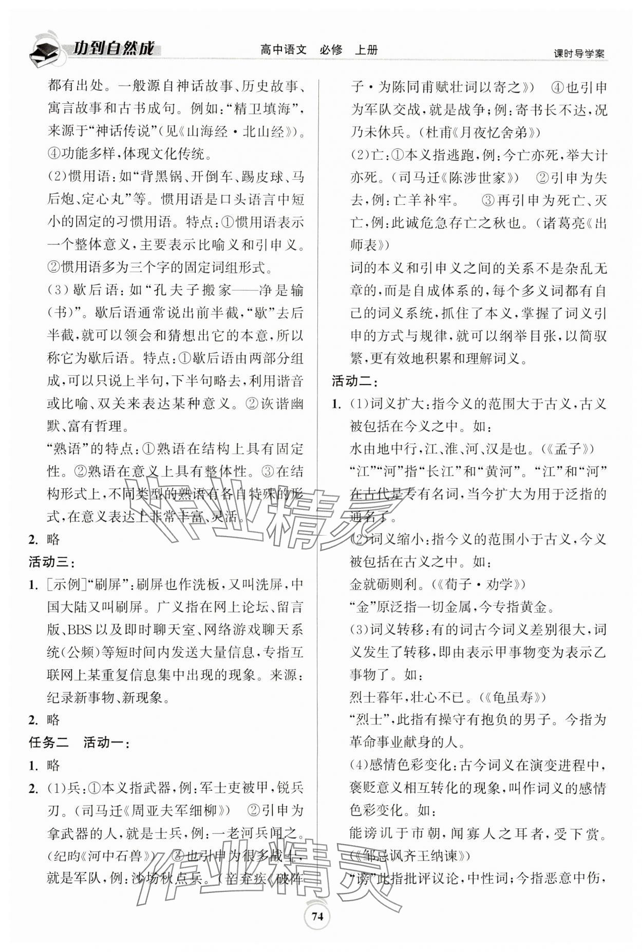 注:目前有些书本章节名称可能整理的还不是很完善,但都是按照顺序排列的,请同学们按照顺序仔细查找。练习册 2023年功到自然成课时导学案语文必修上册 答案主要是用来给同学们做完题方便对答案用的,请勿直接抄袭。