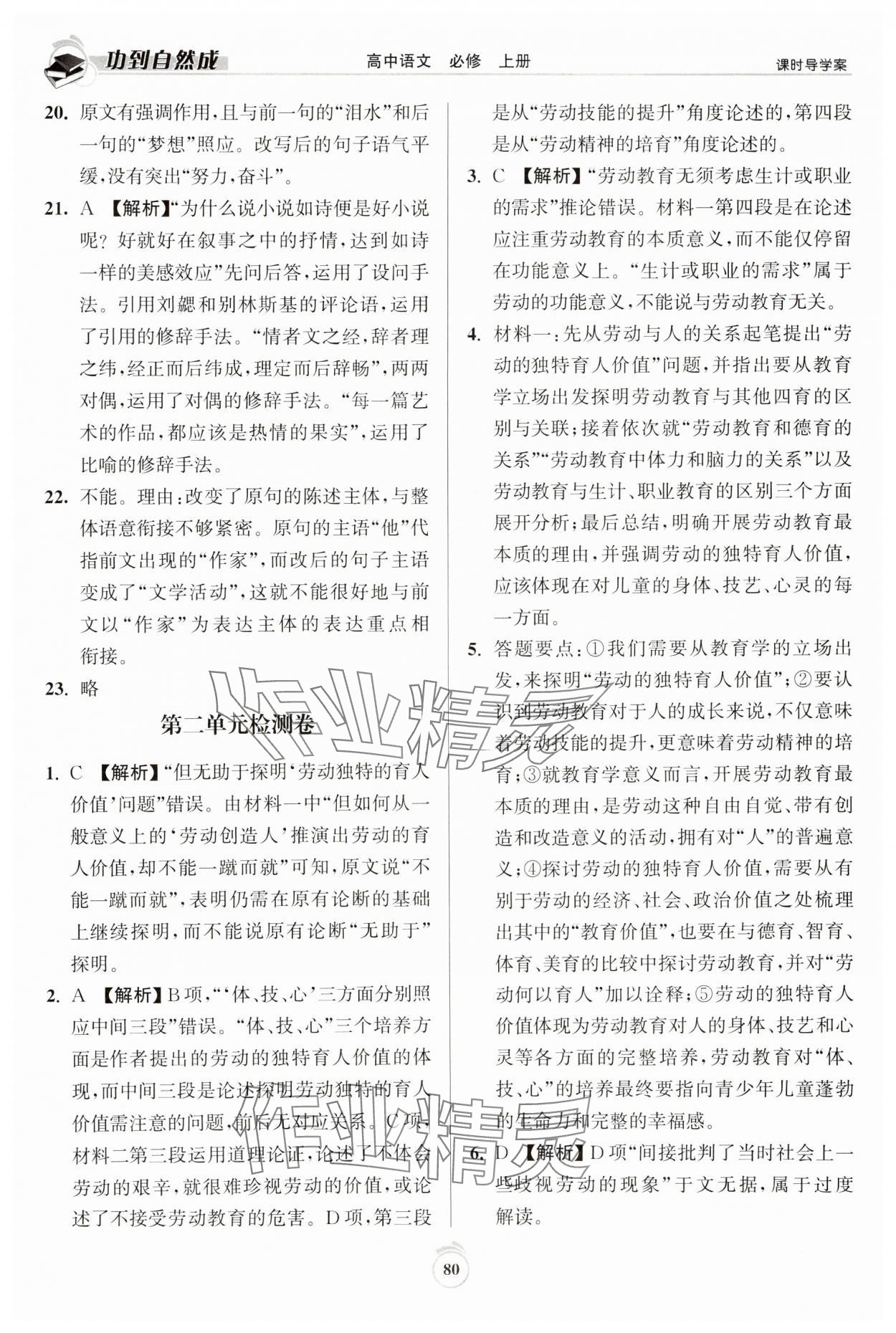 注:目前有些书本章节名称可能整理的还不是很完善,但都是按照顺序排列的,请同学们按照顺序仔细查找。练习册 2023年功到自然成课时导学案语文必修上册 答案主要是用来给同学们做完题方便对答案用的,请勿直接抄袭。
