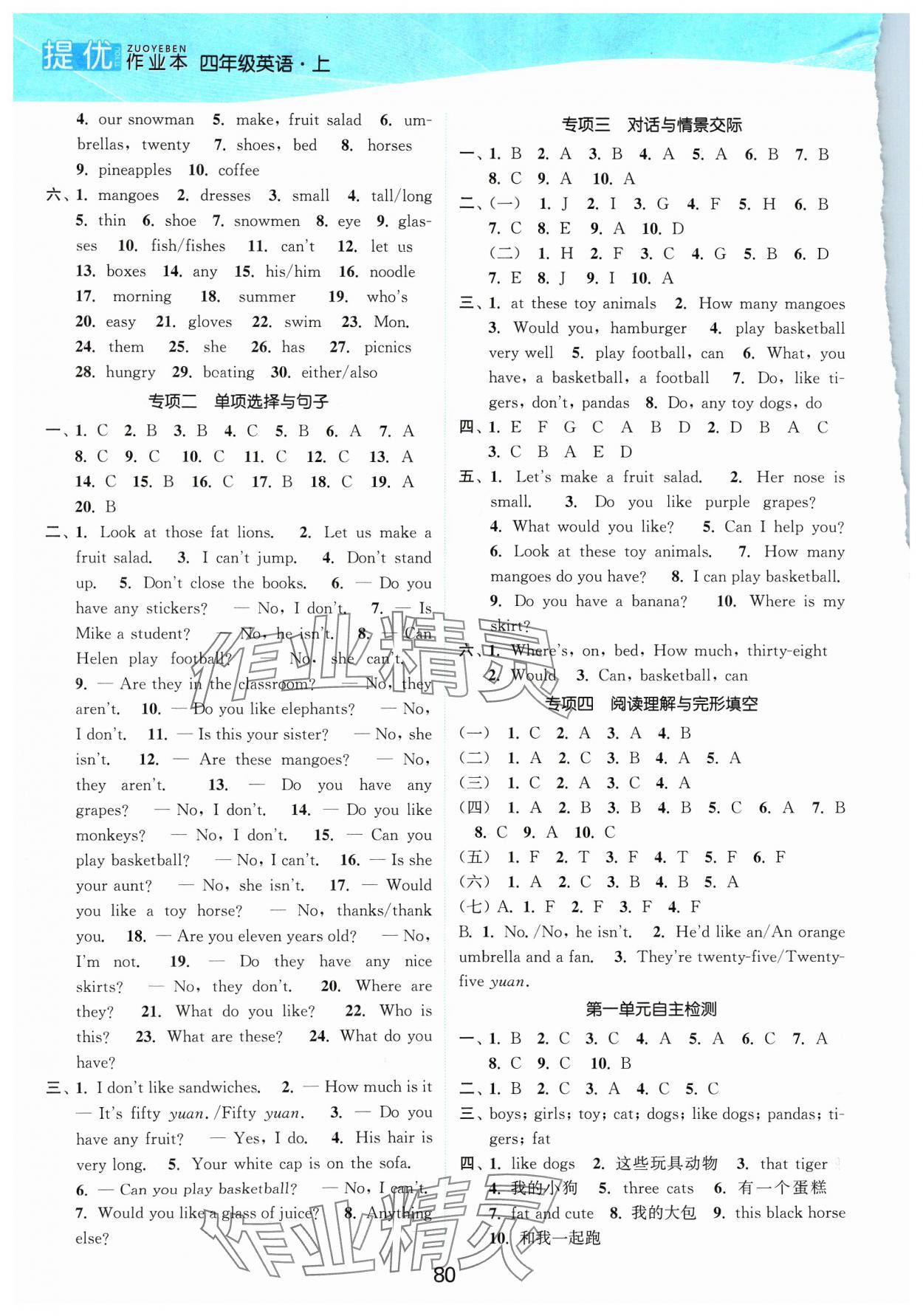 注:目前有些书本章节名称可能整理的还不是很完善,但都是按照顺序排列的,请同学们按照顺序仔细查找。练习册 2023年高效精练提优作业本四年级英语上册译林版 答案主要是用来给同学们做完题方便对答案用的,请勿直接抄袭。