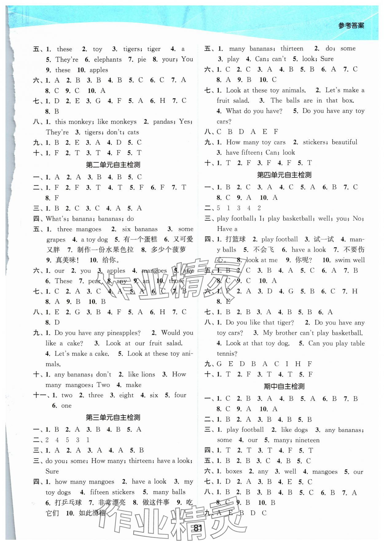 注:目前有些书本章节名称可能整理的还不是很完善,但都是按照顺序排列的,请同学们按照顺序仔细查找。练习册 2023年高效精练提优作业本四年级英语上册译林版 答案主要是用来给同学们做完题方便对答案用的,请勿直接抄袭。