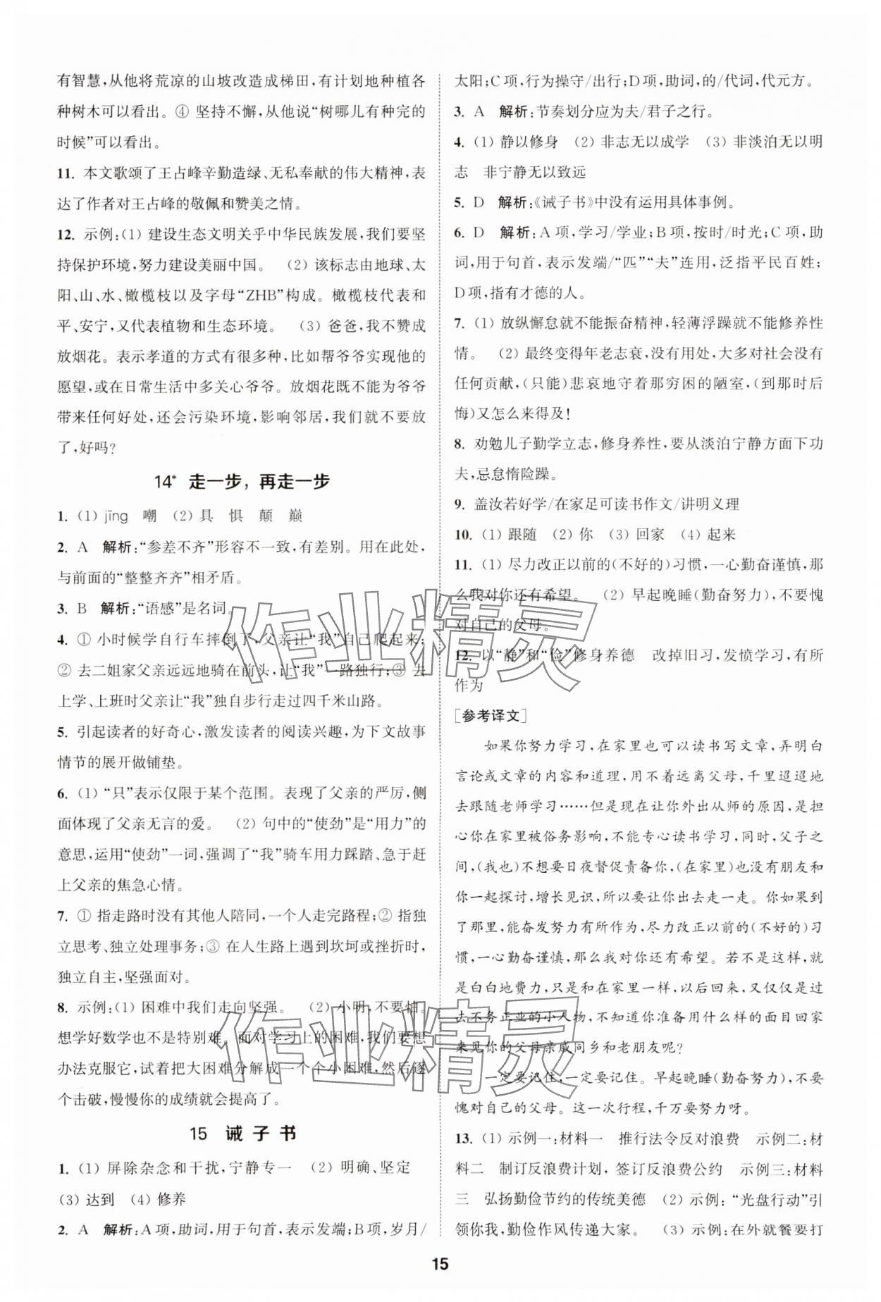 注:目前有些书本章节名称可能整理的还不是很完善,但都是按照顺序排列的,请同学们按照顺序仔细查找。练习册 2023年金钥匙提优训练课课练七年级语文上册人教版 答案主要是用来给同学们做完题方便对答案用的,请勿直接抄袭。