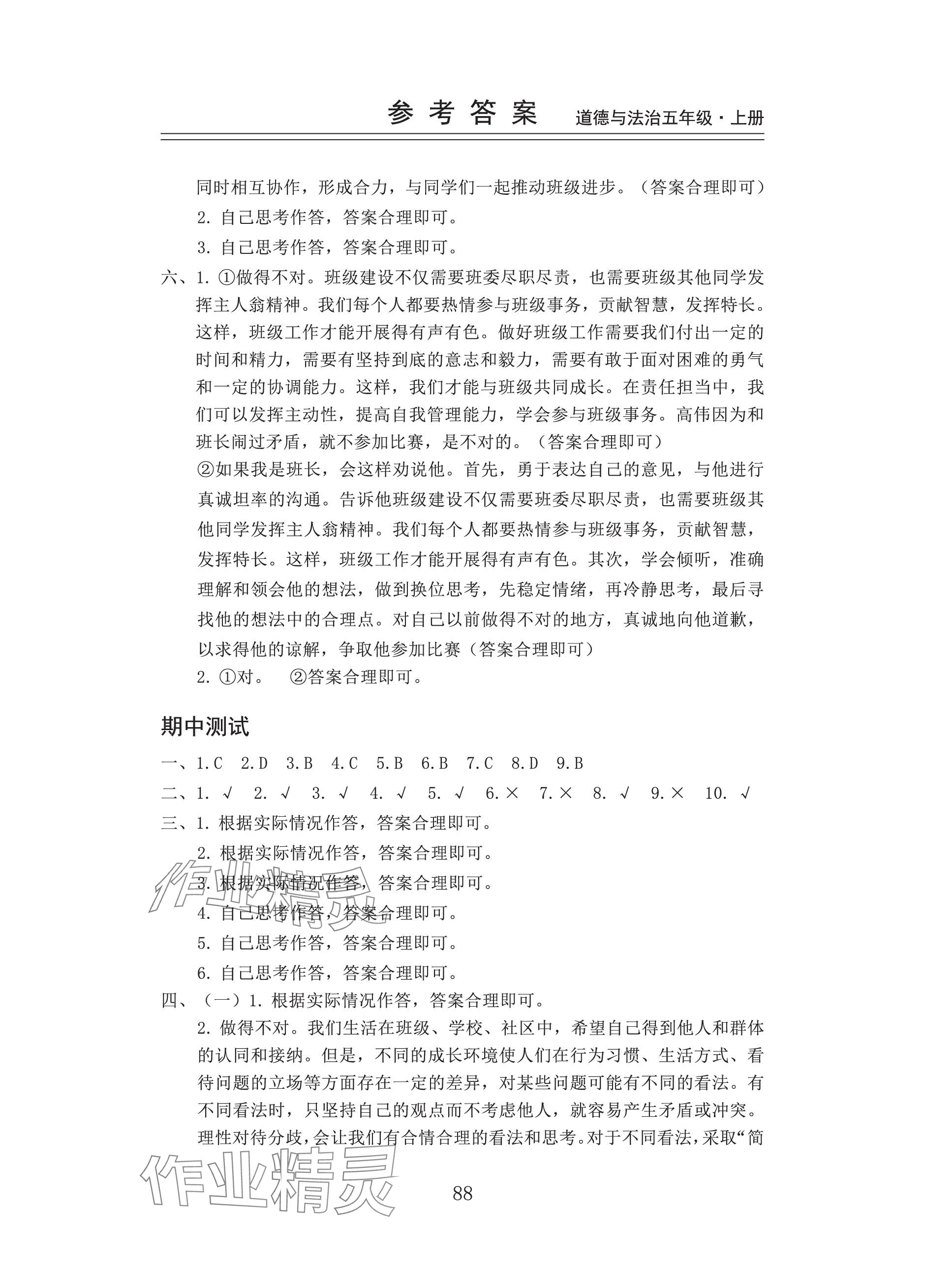 注:目前有些书本章节名称可能整理的还不是很完善,但都是按照顺序排列的,请同学们按照顺序仔细查找。练习册 2023年新思维伴你学五年级道德与法治上册人教版 答案主要是用来给同学们做完题方便对答案用的,请勿直接抄袭。