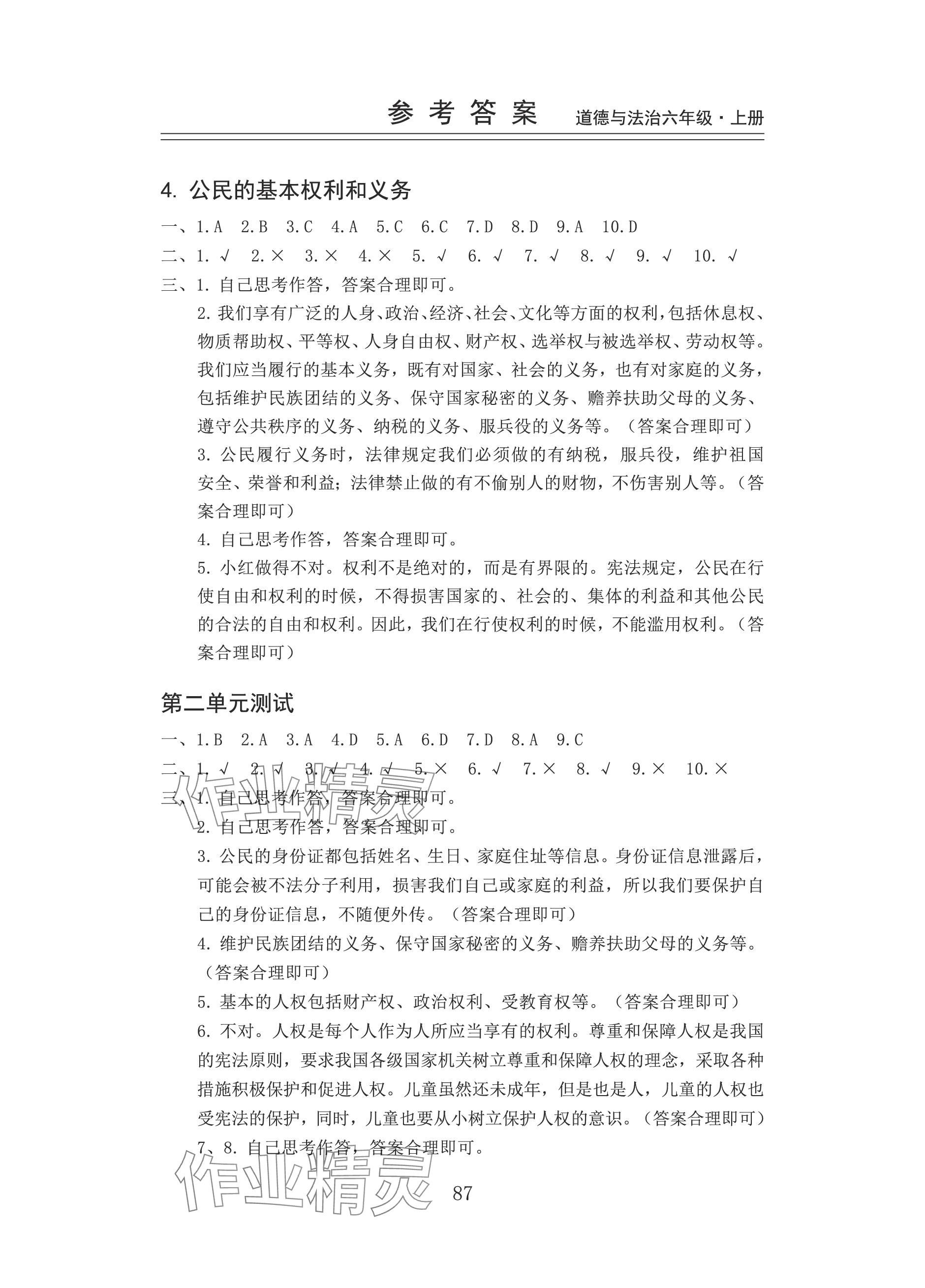 注:目前有些书本章节名称可能整理的还不是很完善,但都是按照顺序排列的,请同学们按照顺序仔细查找。练习册 2023年新思维伴你学六年级道德与法治上册人教版 答案主要是用来给同学们做完题方便对答案用的,请勿直接抄袭。