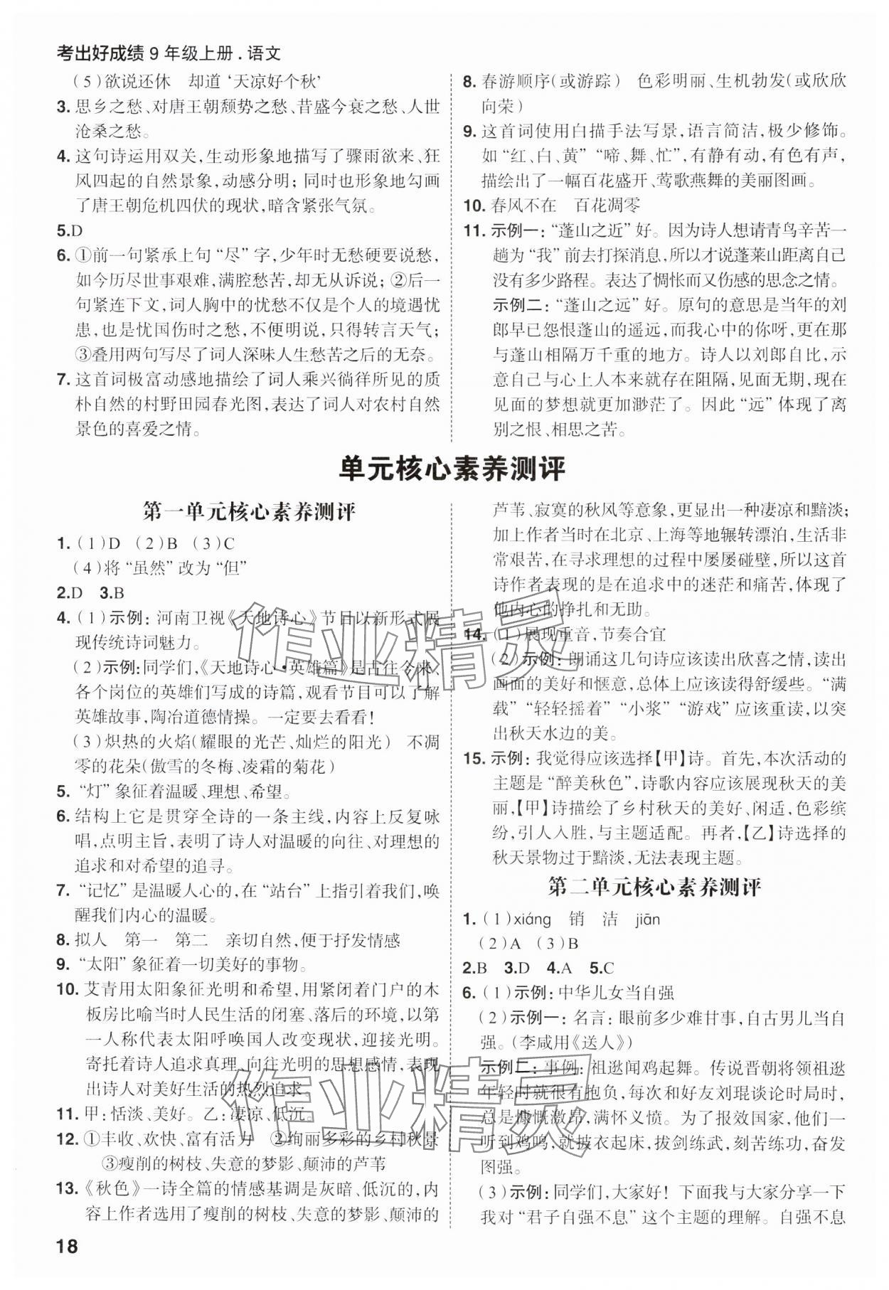 注:目前有些书本章节名称可能整理的还不是很完善,但都是按照顺序排列的,请同学们按照顺序仔细查找。练习册 2023年考出好成绩九年级语文全一册人教版 答案主要是用来给同学们做完题方便对答案用的,请勿直接抄袭。