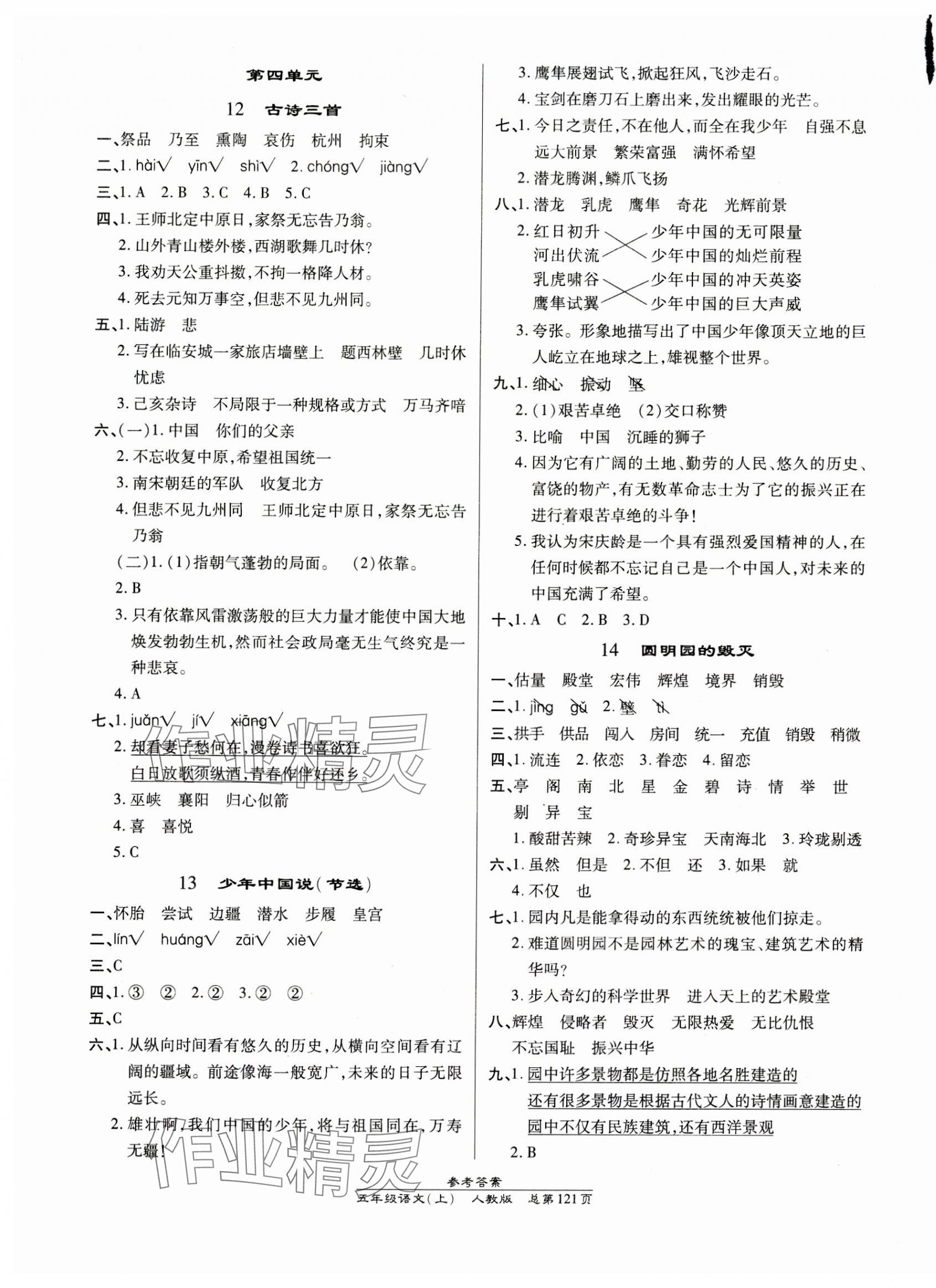 注:目前有些书本章节名称可能整理的还不是很完善,但都是按照顺序排列的,请同学们按照顺序仔细查找。练习册 2023年汇文图书卓越课堂五年级语文上册人教版 答案主要是用来给同学们做完题方便对答案用的,请勿直接抄袭。