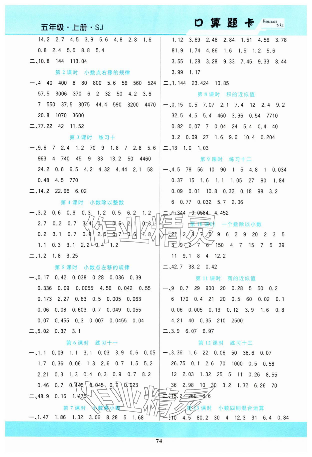 2023年名师计划口算题卡五年级数学上册苏教版