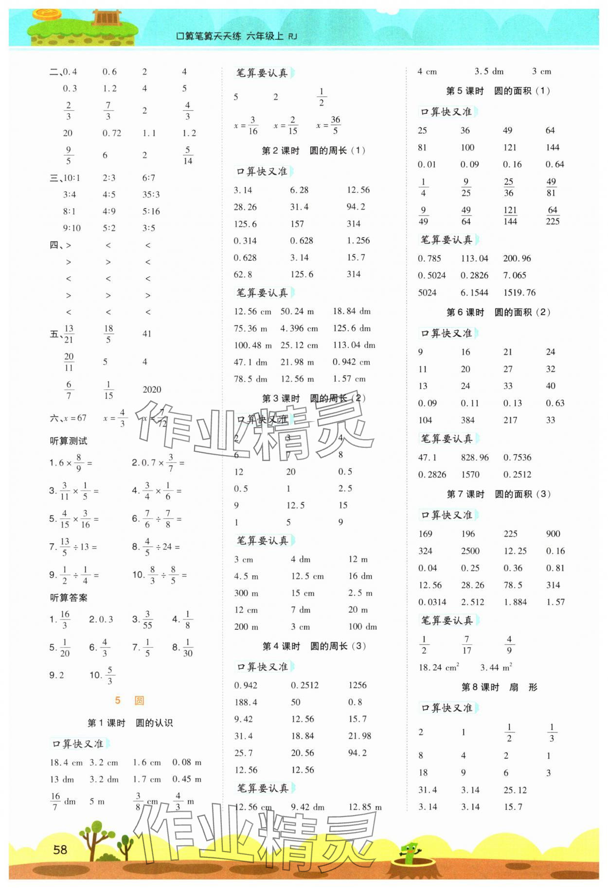 注:目前有些书本章节名称可能整理的还不是很完善,但都是按照顺序排列的,请同学们按照顺序仔细查找。练习册 2023年开学了口算笔算天天练六年级数学上册人教版 答案主要是用来给同学们做完题方便对答案用的,请勿直接抄袭。