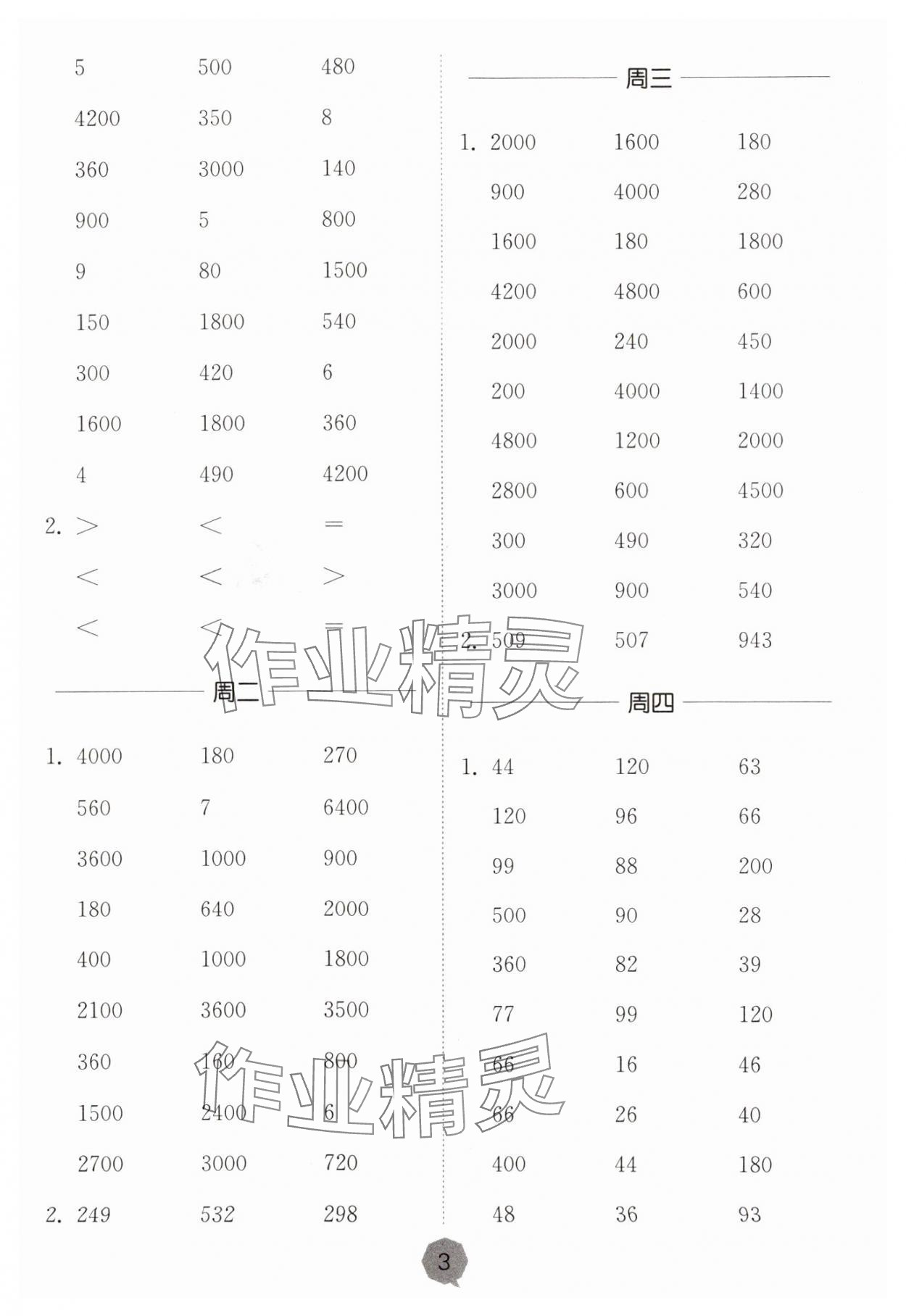 精英家教网> 2023年口算课时通三年级数学上册苏教版 > 第3页 参考答案
