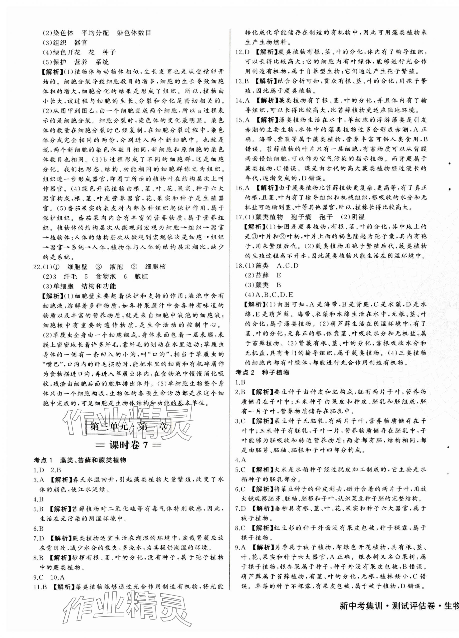 注:目前有些书本章节名称可能整理的还不是很完善,但都是按照顺序排列的,请同学们按照顺序仔细查找。练习册 2023年新中考集训测试评估卷七年级生物上册人教版 答案主要是用来给同学们做完题方便对答案用的,请勿直接抄袭。