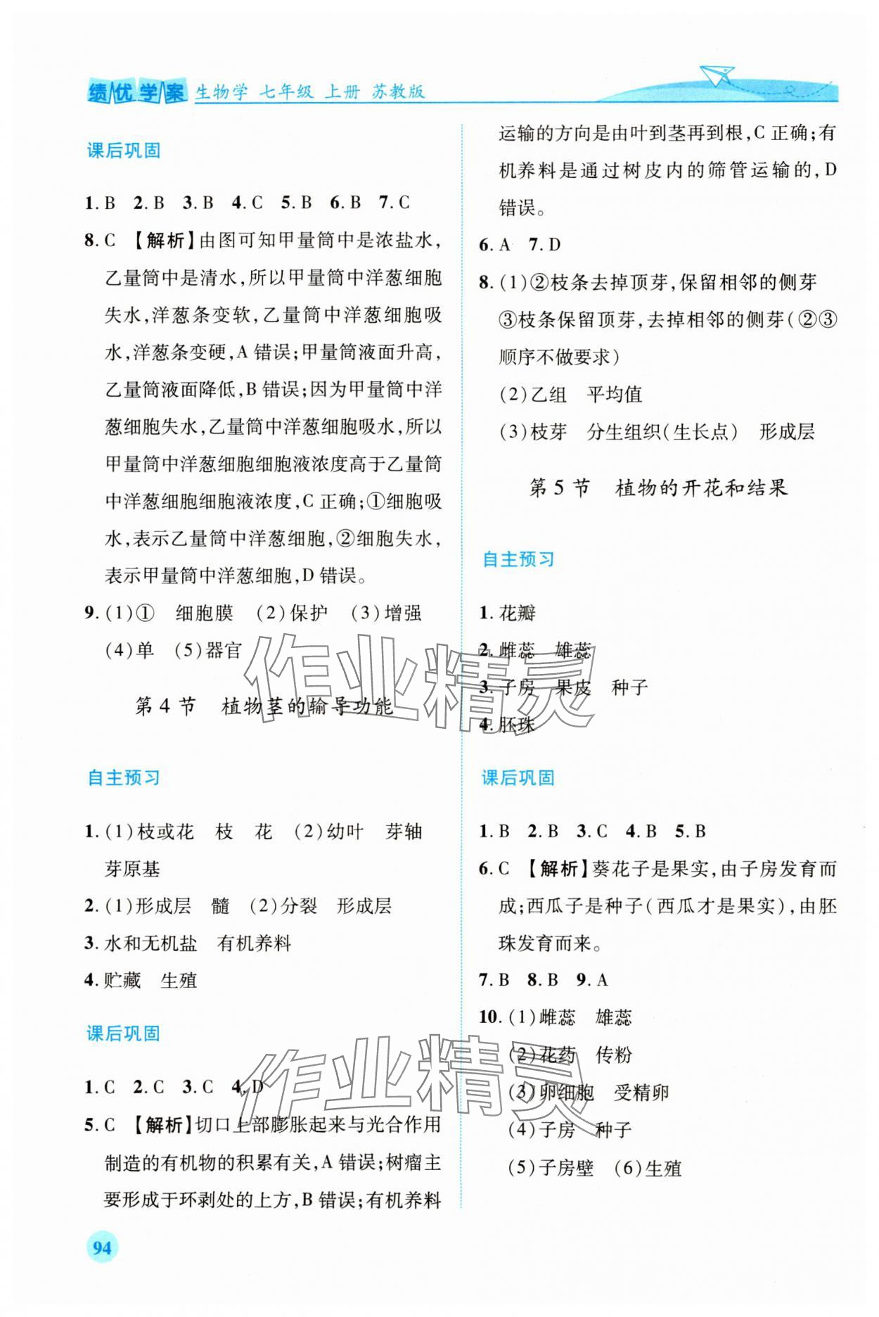 注:目前有些书本章节名称可能整理的还不是很完善,但都是按照顺序排列的,请同学们按照顺序仔细查找。练习册 2023年绩优学案七年级生物上册苏教版 答案主要是用来给同学们做完题方便对答案用的,请勿直接抄袭。
