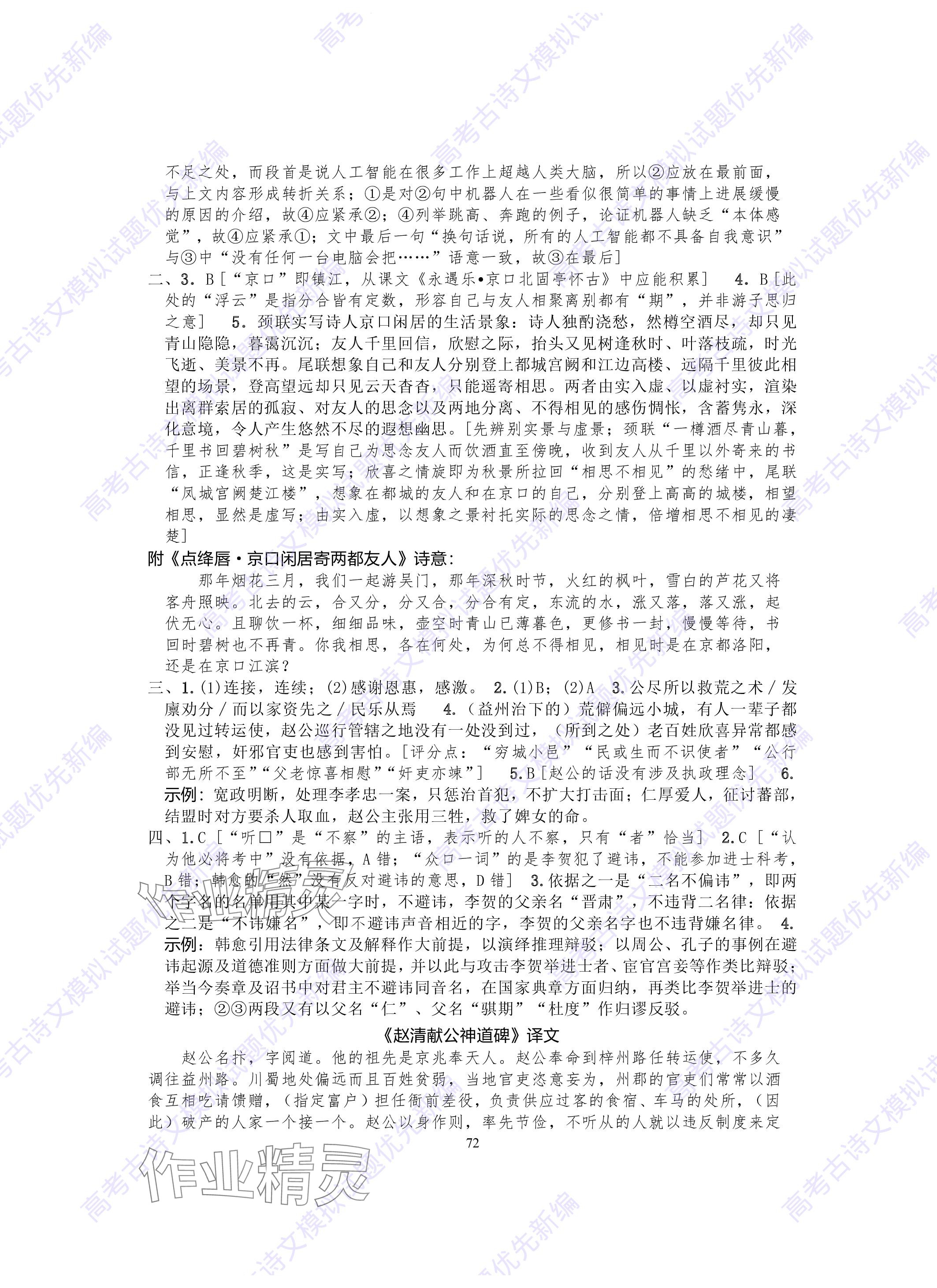注:目前有些书本章节名称可能整理的还不是很完善,但都是按照顺序排列的,请同学们按照顺序仔细查找。练习册 2023年高考古诗文模拟试题优选新编高三语文全一册人教版 答案主要是用来给同学们做完题方便对答案用的,请勿直接抄袭。