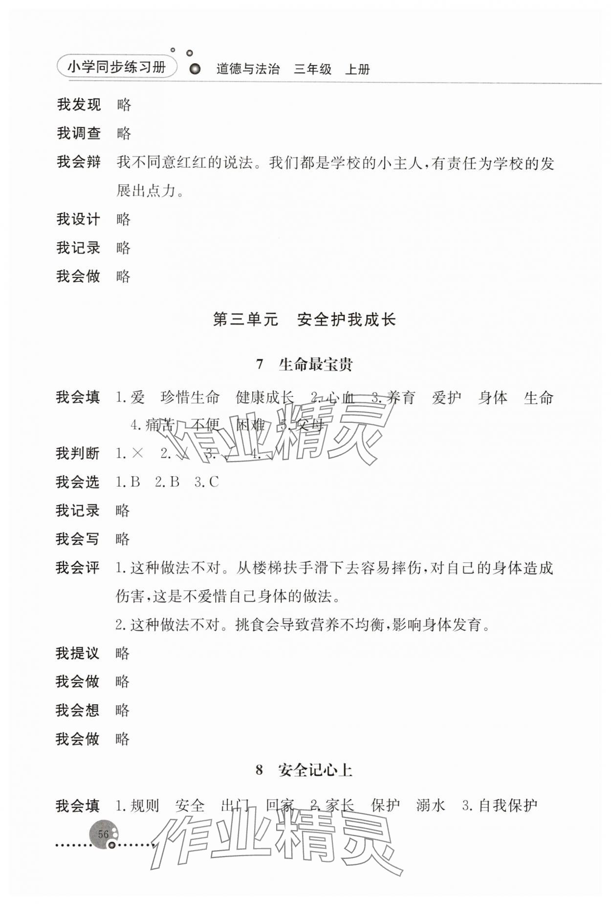 2023年同步练习册人民教育出版社三年级道德与法治上册人教版山东专版