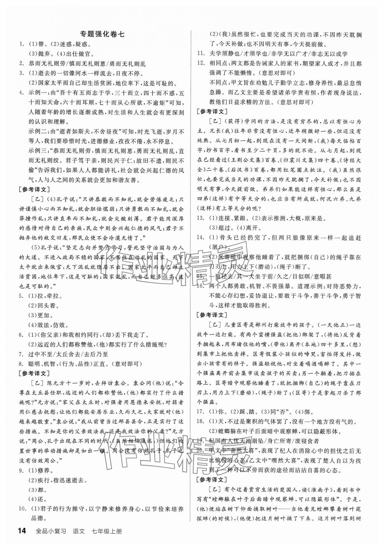 注:目前有些书本章节名称可能整理的还不是很完善,但都是按照顺序排列的,请同学们按照顺序仔细查找。练习册 2023年全品小复习七年级语文上册人教版宁夏专版 答案主要是用来给同学们做完题方便对答案用的,请勿直接抄袭。