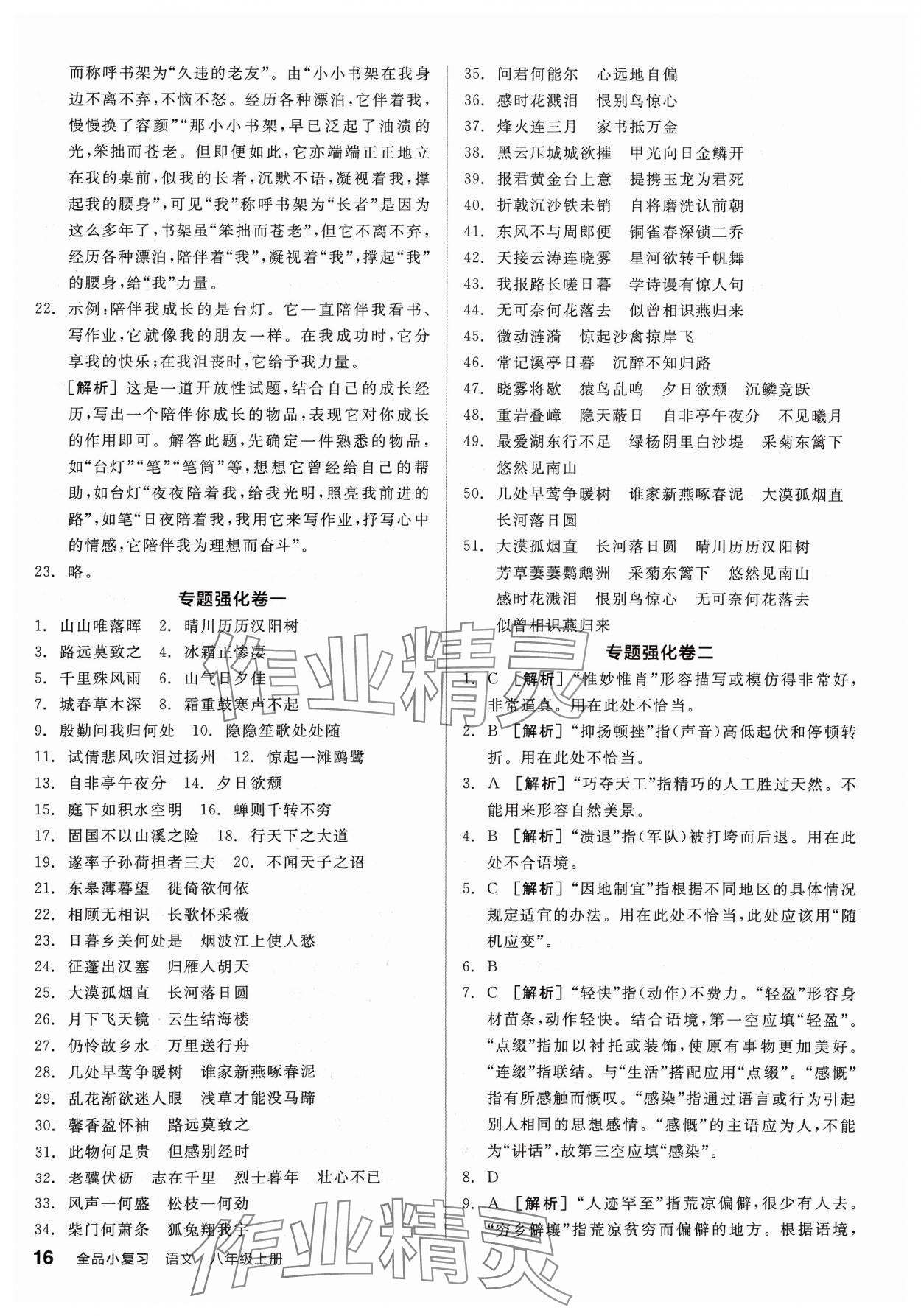 注:目前有些书本章节名称可能整理的还不是很完善,但都是按照顺序排列的,请同学们按照顺序仔细查找。练习册 2023年全品小复习八年级语文上册人教版宁夏专版 答案主要是用来给同学们做完题方便对答案用的,请勿直接抄袭。