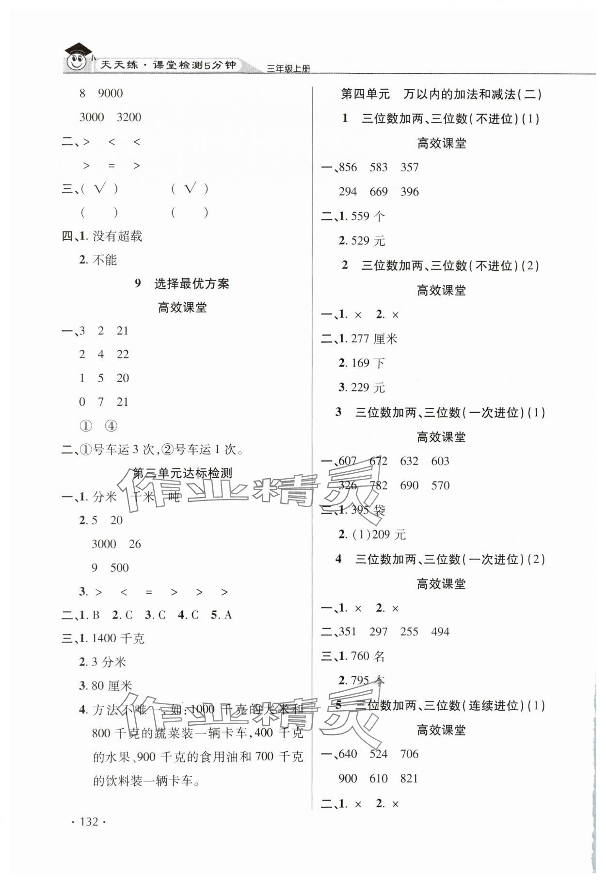 注:目前有些书本章节名称可能整理的还不是很完善,但都是按照顺序排列的,请同学们按照顺序仔细查找。练习册 2023年天天练课堂检测5分钟三年级数学上册人教版 答案主要是用来给同学们做完题方便对答案用的,请勿直接抄袭。