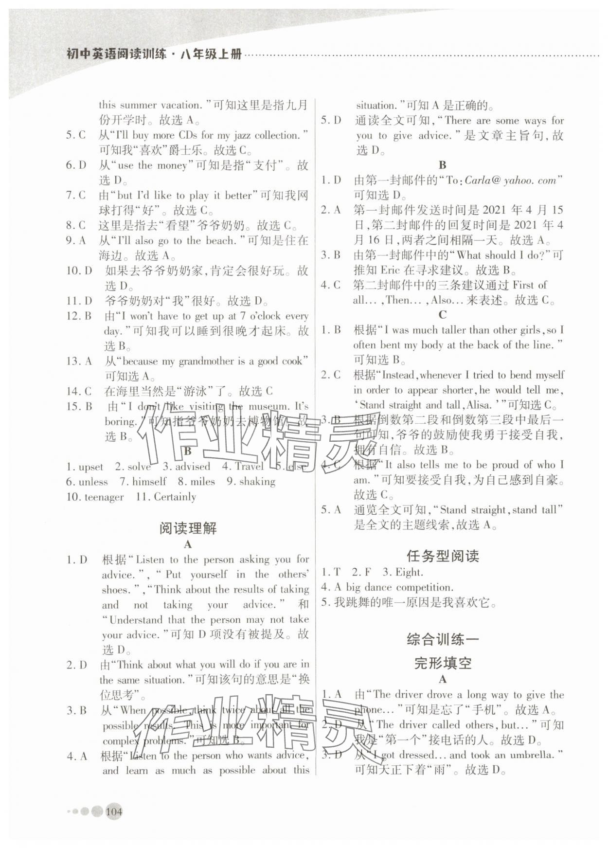 注:目前有些书本章节名称可能整理的还不是很完善,但都是按照顺序排列的,请同学们按照顺序仔细查找。练习册 2023年初中英语阅读训练二十一世纪出版社八年级人教版 答案主要是用来给同学们做完题方便对答案用的,请勿直接抄袭。