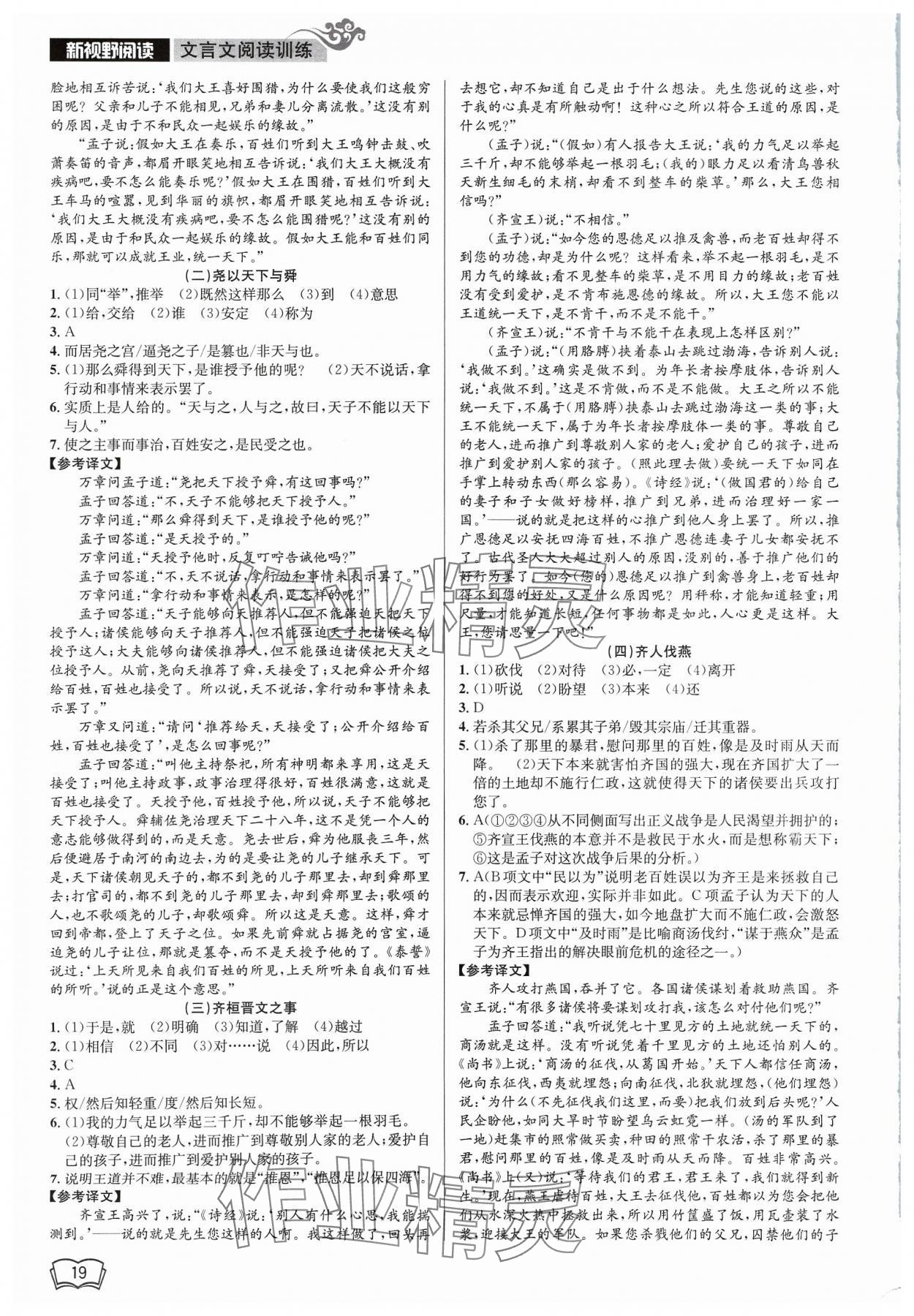 注:目前有些书本章节名称可能整理的还不是很完善,但都是按照顺序排列的,请同学们按照顺序仔细查找。练习册 2023年新视野阅读文言文阅读训练九年级人教版 答案主要是用来给同学们做完题方便对答案用的,请勿直接抄袭。