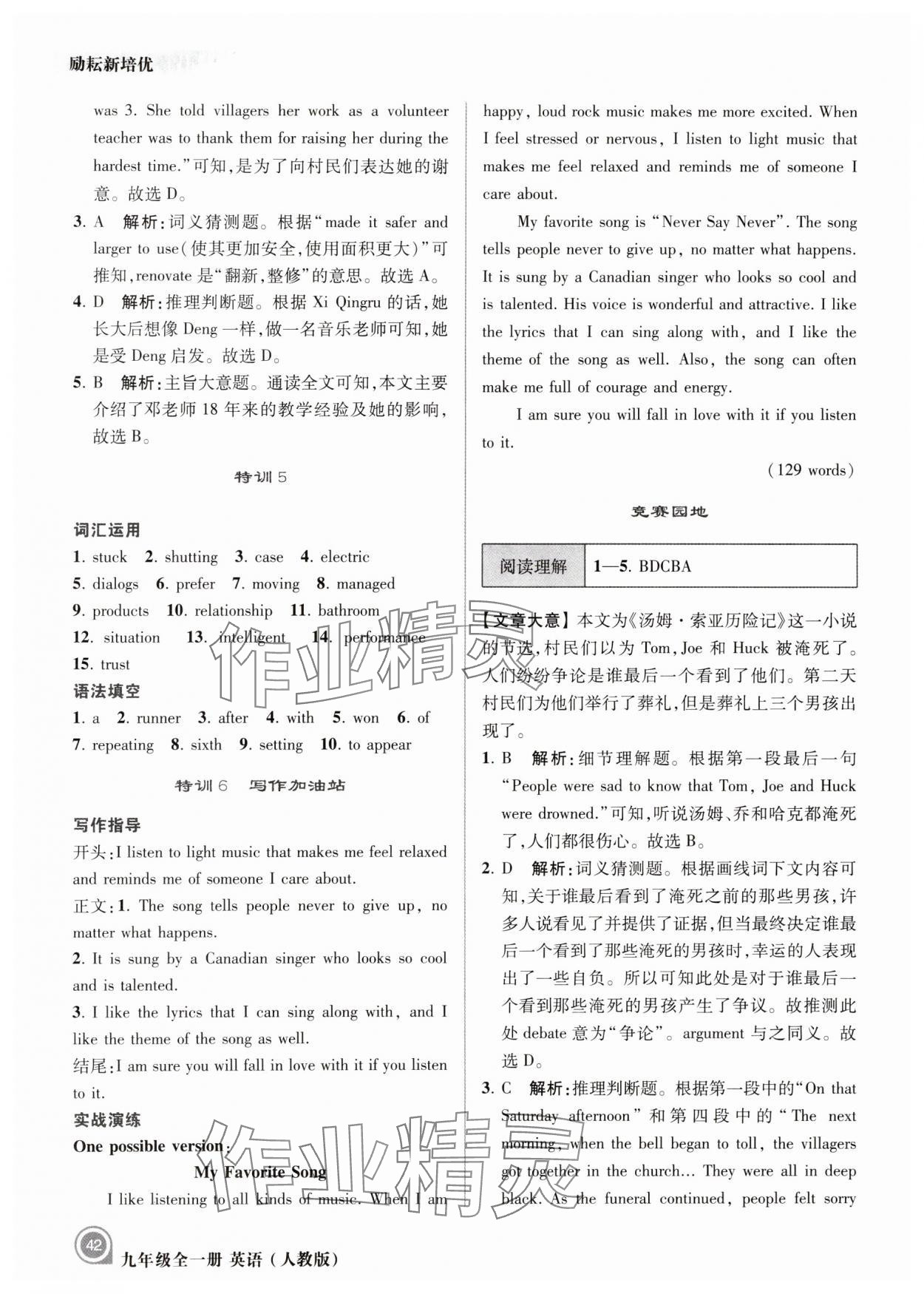 注:目前有些书本章节名称可能整理的还不是很完善,但都是按照顺序排列的,请同学们按照顺序仔细查找。练习册 2023年励耘新培优九年级英语全一册人教版 答案主要是用来给同学们做完题方便对答案用的,请勿直接抄袭。
