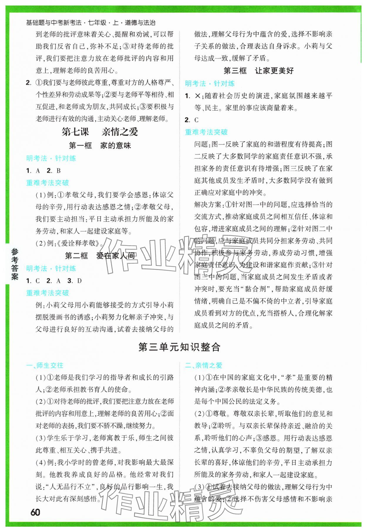 2023年基础题与中考新考法七年级道德与法治上册人教版