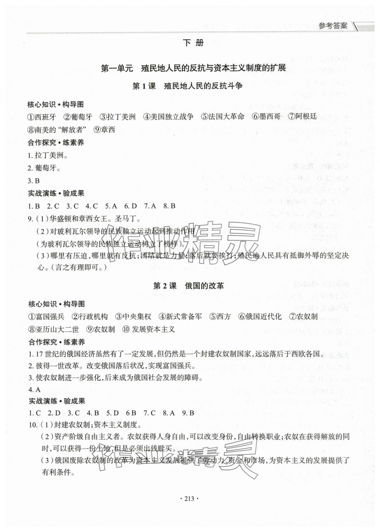 注:目前有些书本章节名称可能整理的还不是很完善,但都是按照顺序排列的,请同学们按照顺序仔细查找。练习册 2023年新课堂同步学习与探究九年级历史上册 答案主要是用来给同学们做完题方便对答案用的,请勿直接抄袭。