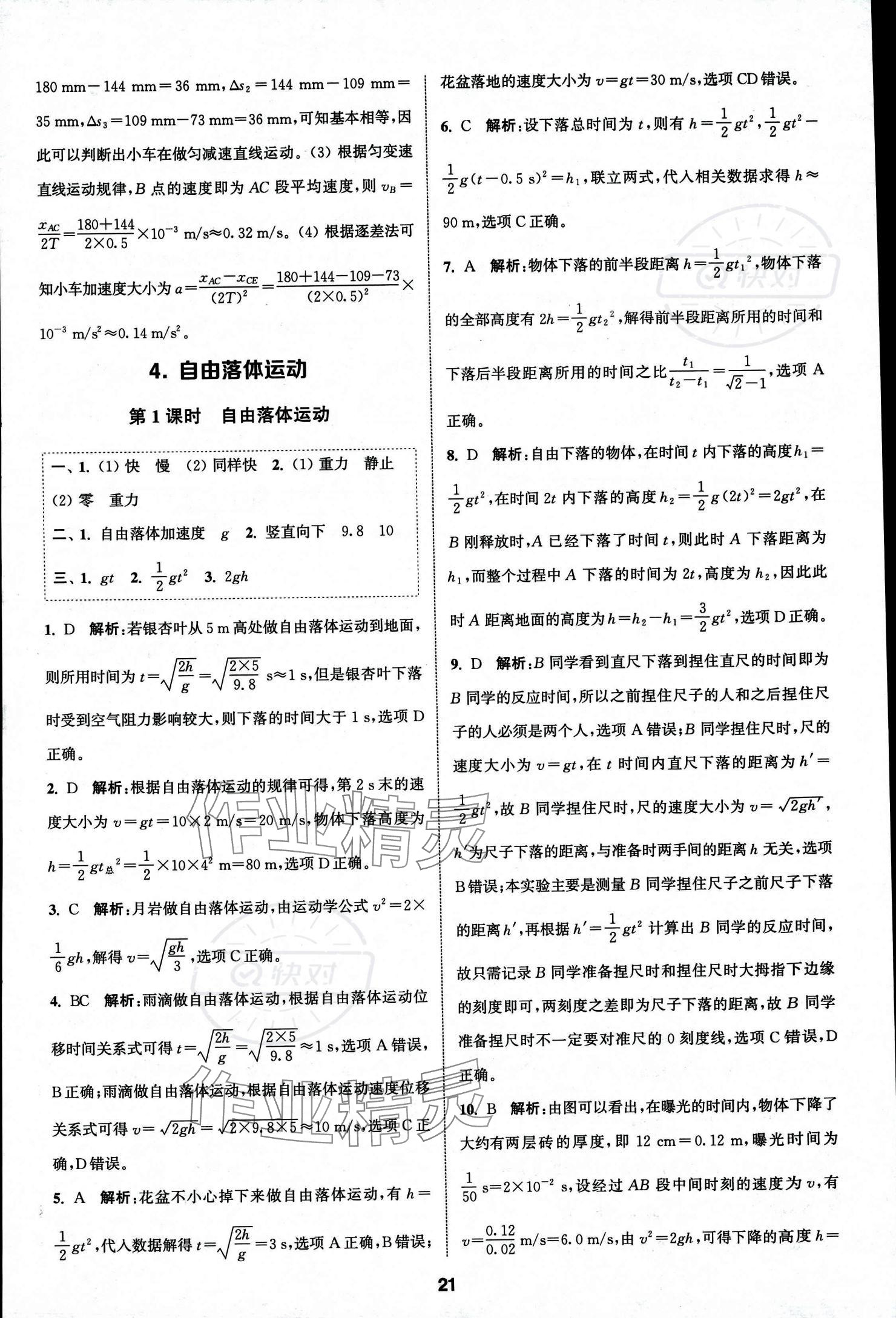 注:目前有些书本章节名称可能整理的还不是很完善,但都是按照顺序排列的,请同学们按照顺序仔细查找。练习册 2023年通城学典课时作业本高中物理必修第一册人教版 答案主要是用来给同学们做完题方便对答案用的,请勿直接抄袭。