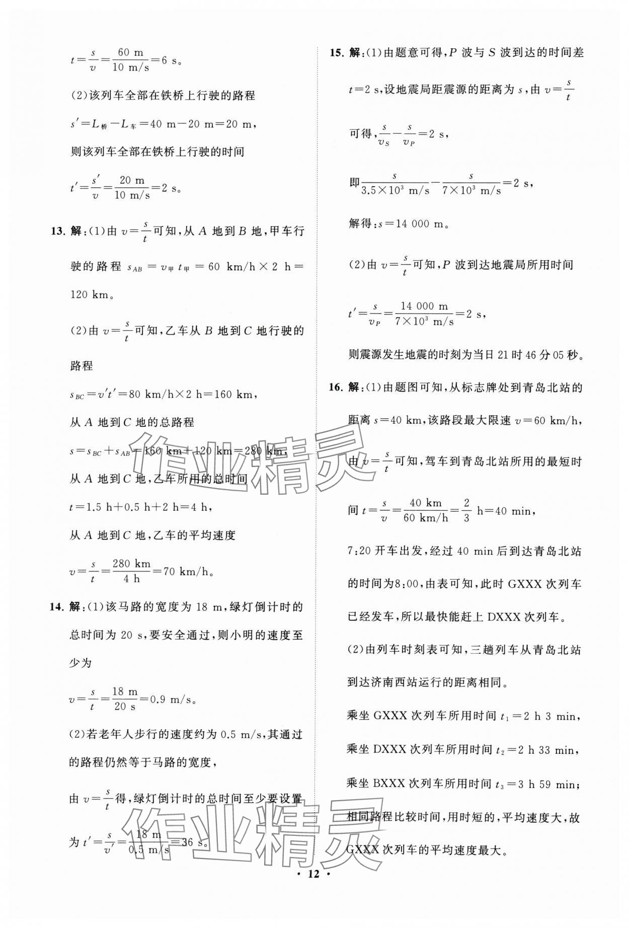 2023年初中同步练习册分层卷八年级物理上册教科版