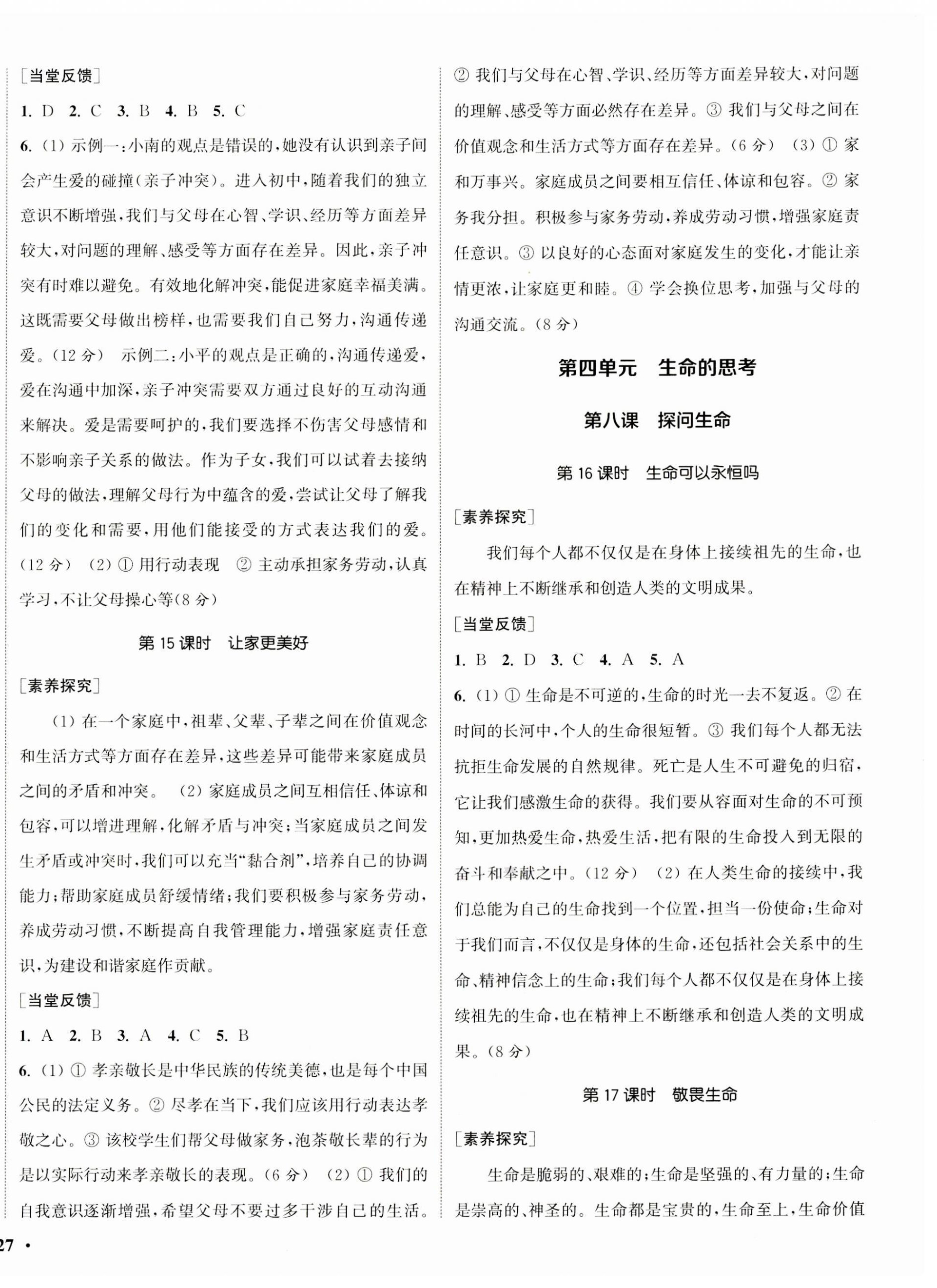 2023年通城学典活页检测七年级道德与法治上册人教版