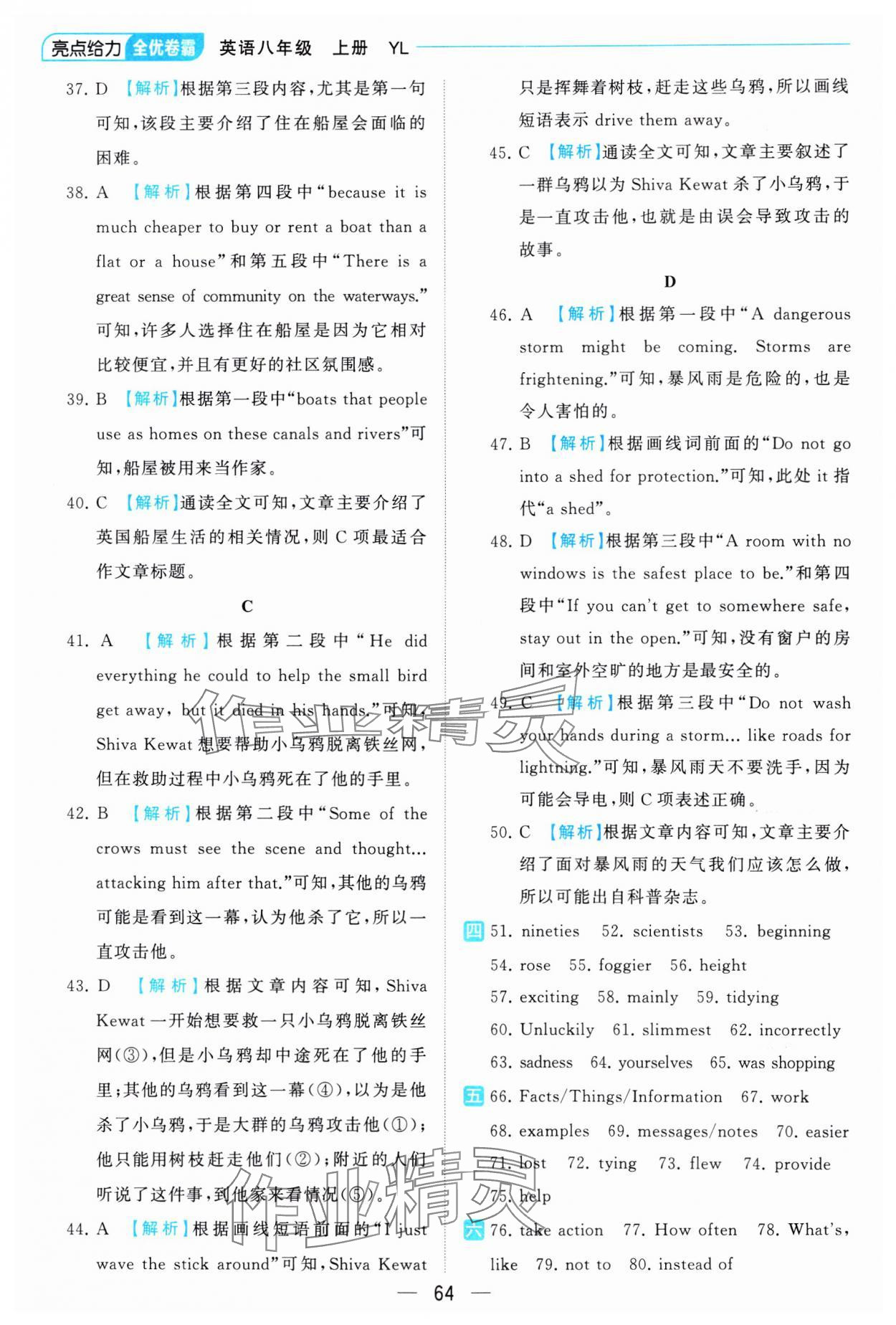 注:目前有些书本章节名称可能整理的还不是很完善,但都是按照顺序排列的,请同学们按照顺序仔细查找。练习册 2023年亮点给力全优卷霸八年级英语上册译林版 答案主要是用来给同学们做完题方便对答案用的,请勿直接抄袭。