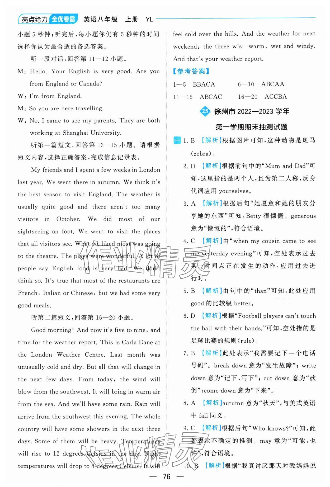 2023年亮点给力全优卷霸八年级英语上册译林版