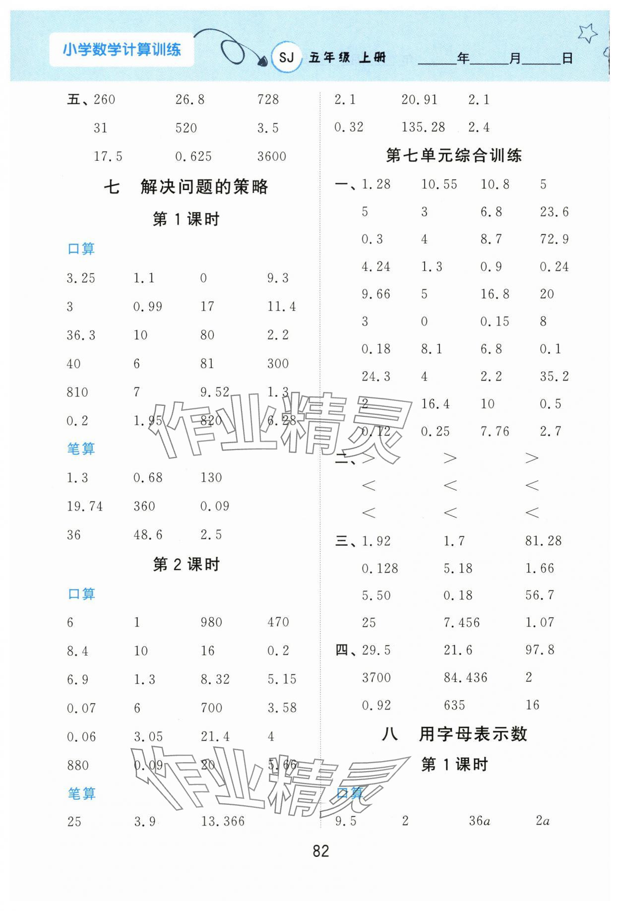 2023年计算训练南京大学出版社五年级数学上册苏教版