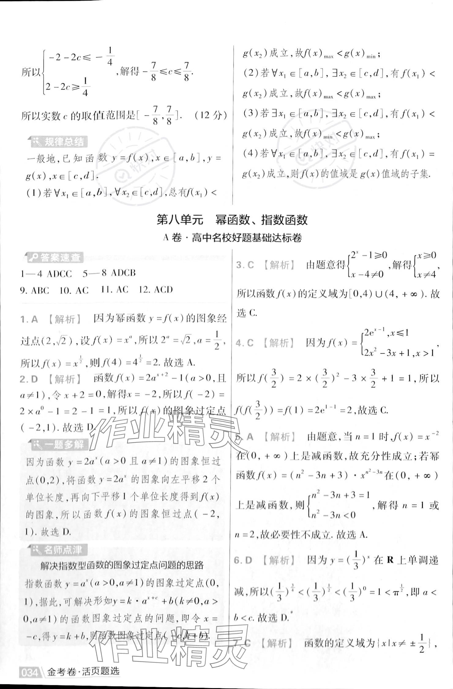注:目前有些书本章节名称可能整理的还不是很完善,但都是按照顺序排列的,请同学们按照顺序仔细查找。练习册 2023年金考卷活页题选高中数学必修第一册苏教版 答案主要是用来给同学们做完题方便对答案用的,请勿直接抄袭。