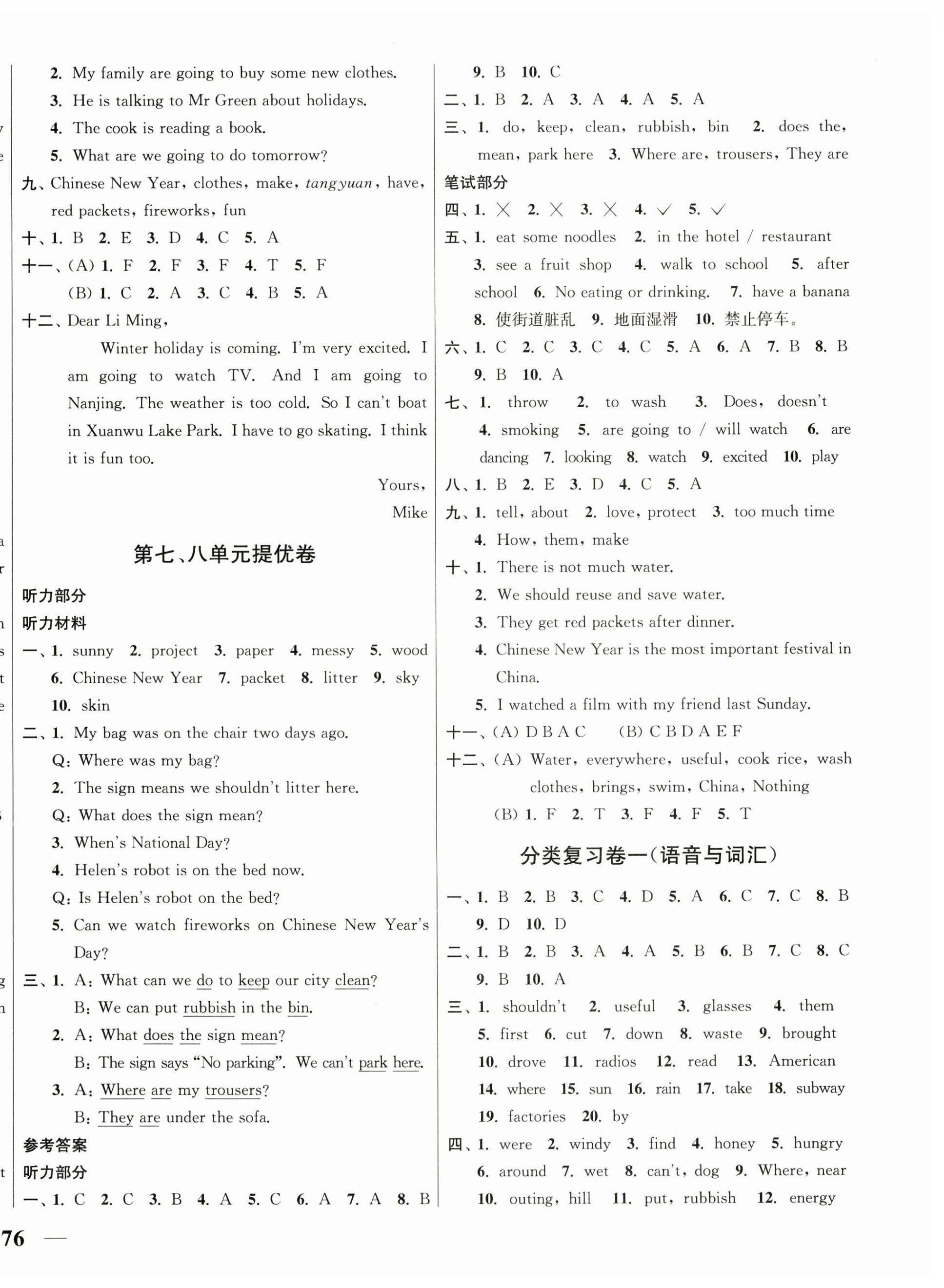 注:目前有些书本章节名称可能整理的还不是很完善,但都是按照顺序排列的,请同学们按照顺序仔细查找。练习册 2023年新课堂单元达标活页卷六年级英语上册译林版 答案主要是用来给同学们做完题方便对答案用的,请勿直接抄袭。