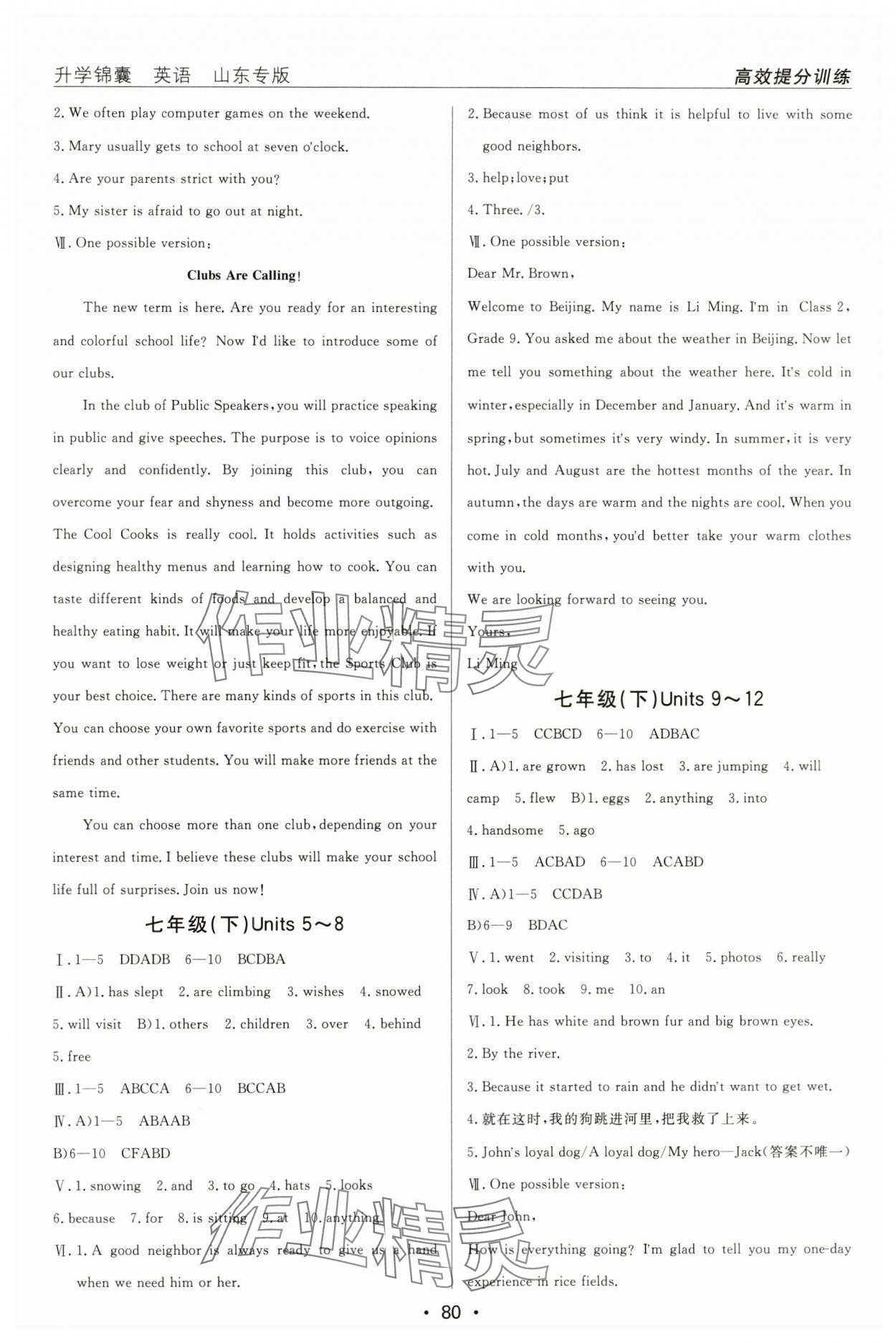 注:目前有些书本章节名称可能整理的还不是很完善,但都是按照顺序排列的,请同学们按照顺序仔细查找。练习册 2024年升学锦囊英语山东专版 答案主要是用来给同学们做完题方便对答案用的,请勿直接抄袭。