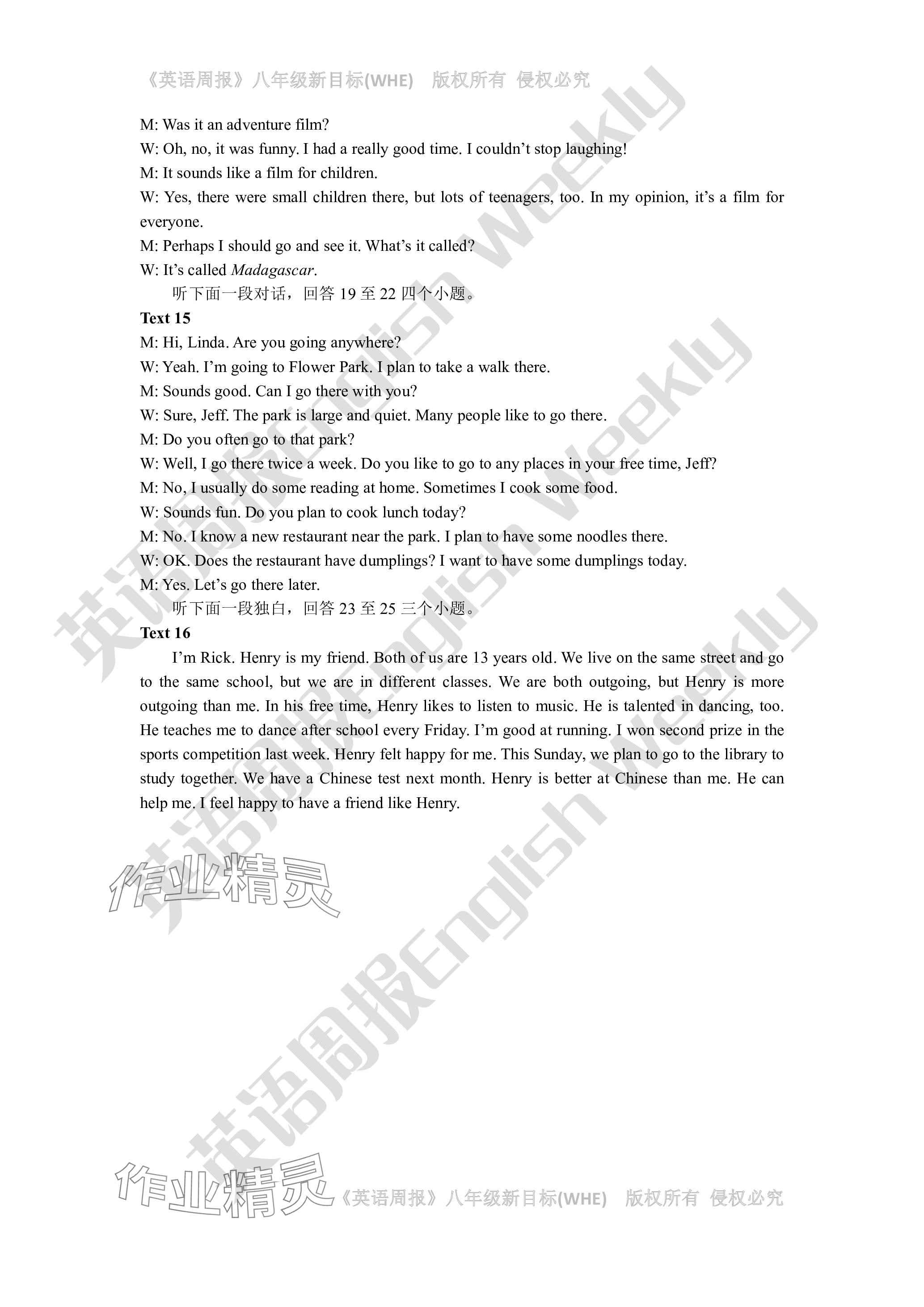 注:目前有些书本章节名称可能整理的还不是很完善,但都是按照顺序排列的,请同学们按照顺序仔细查找。练习册 2023年周报经典英语周报八年级人教版 答案主要是用来给同学们做完题方便对答案用的,请勿直接抄袭。