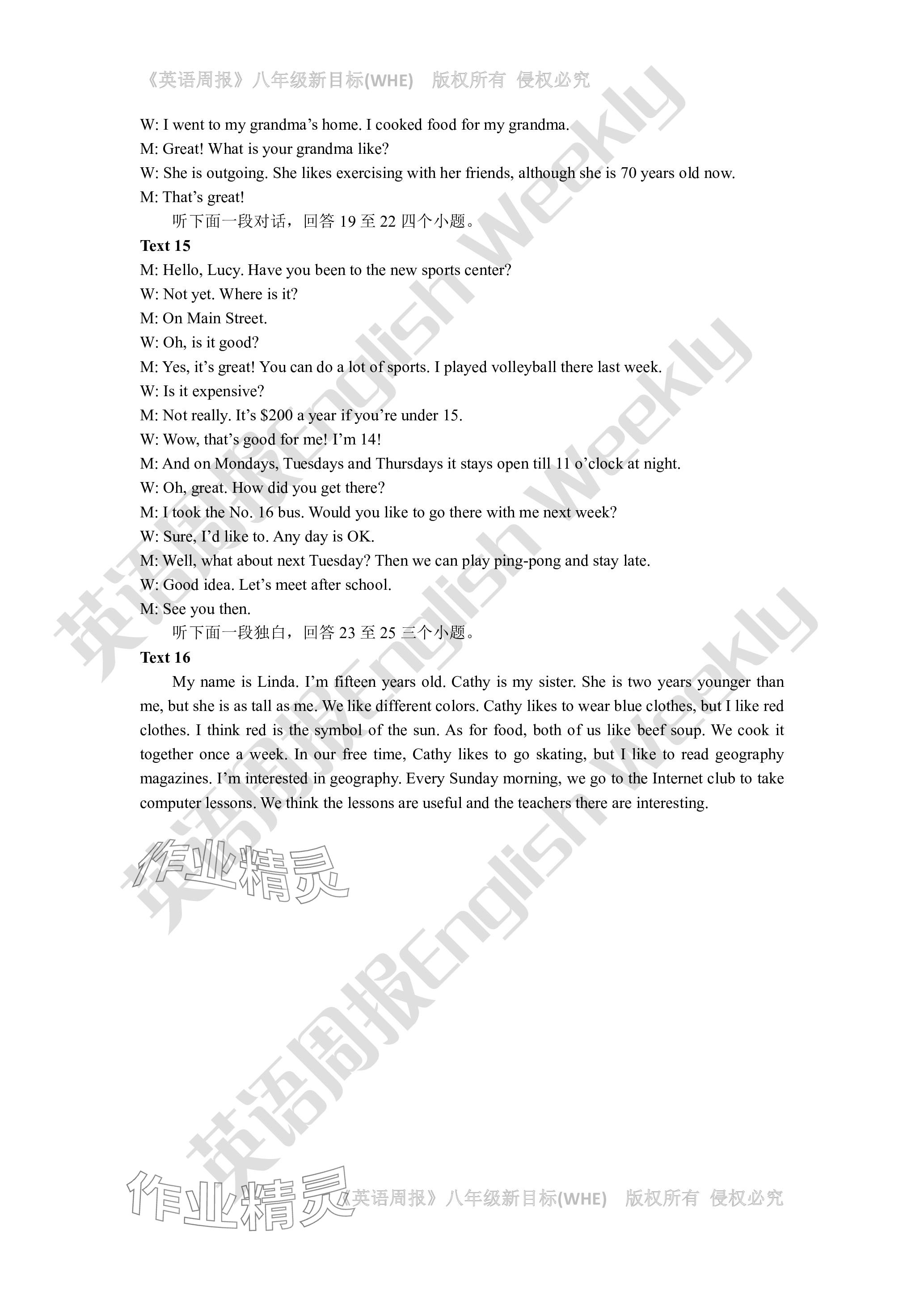 注:目前有些书本章节名称可能整理的还不是很完善,但都是按照顺序排列的,请同学们按照顺序仔细查找。练习册 2023年周报经典英语周报八年级人教版 答案主要是用来给同学们做完题方便对答案用的,请勿直接抄袭。